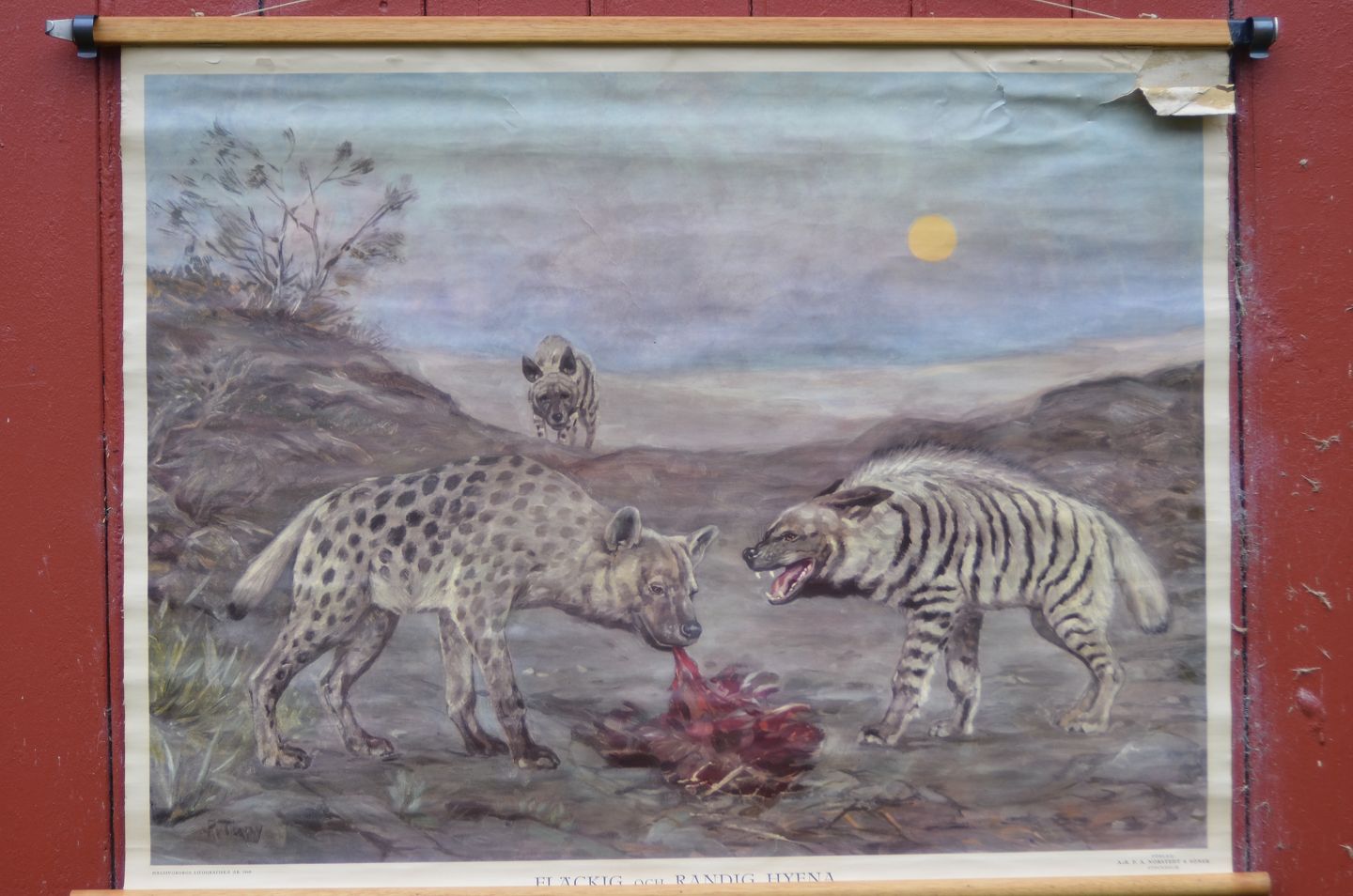 Anskuelsestavle med træstokke: Hyæner, Billedmål: 72 x 95 cm, (anskuelsestavle nr. 20)