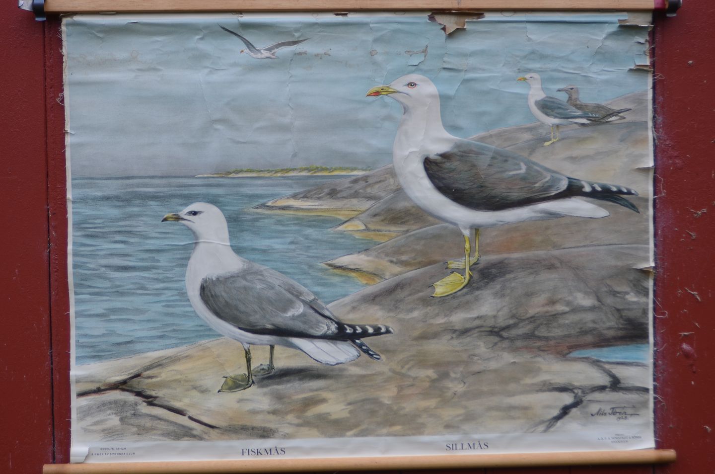Anskuelsestavle med træstokke: Måger, Billedmål: 72 x 95 cm, OBS skader i papiret! (anskuelsestavle nr. 24)