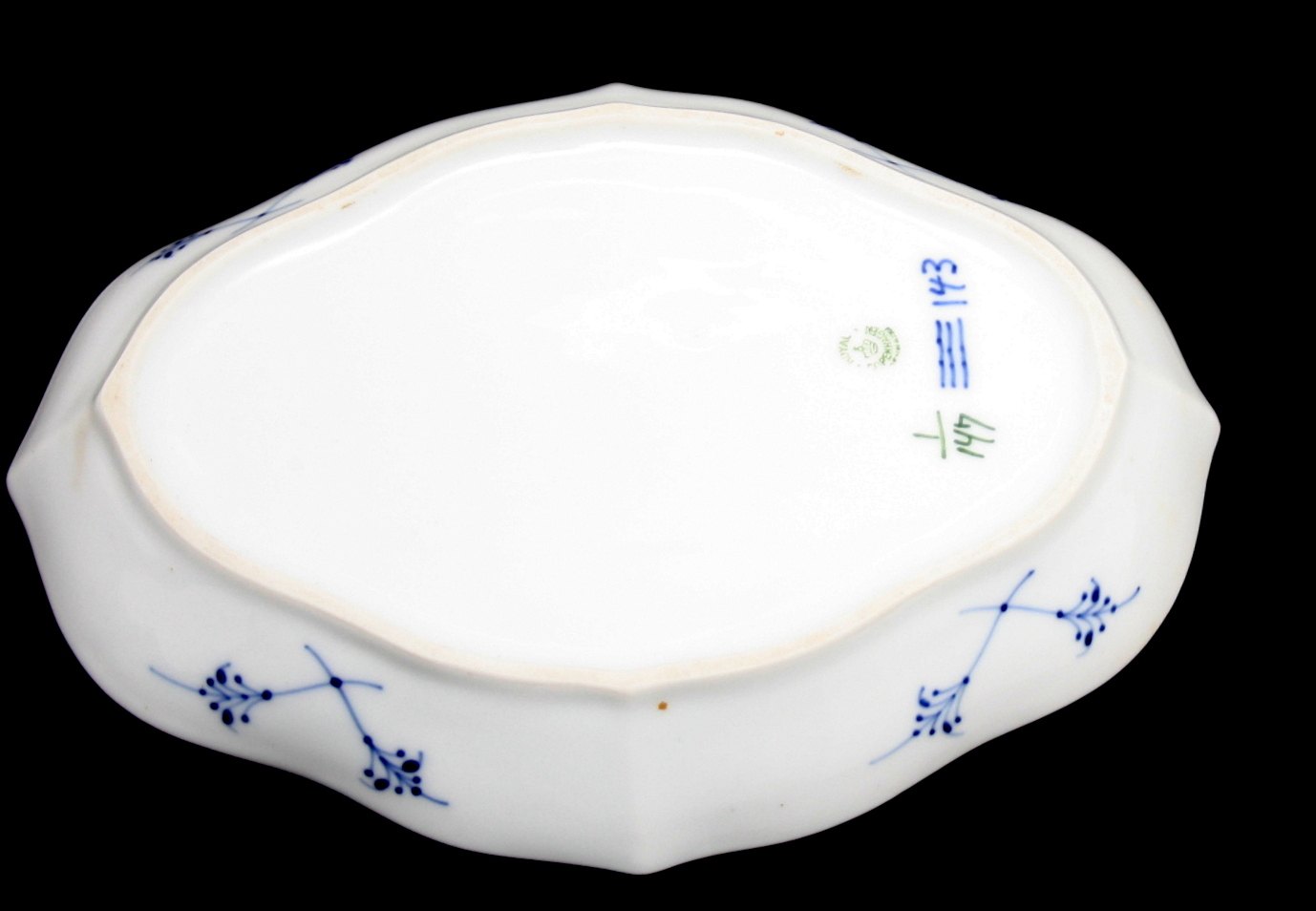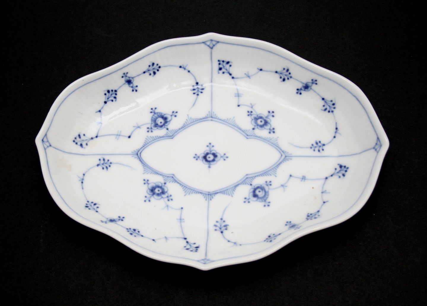 Ovalt fad, Musselmalet riflet, Royal Copenhagen