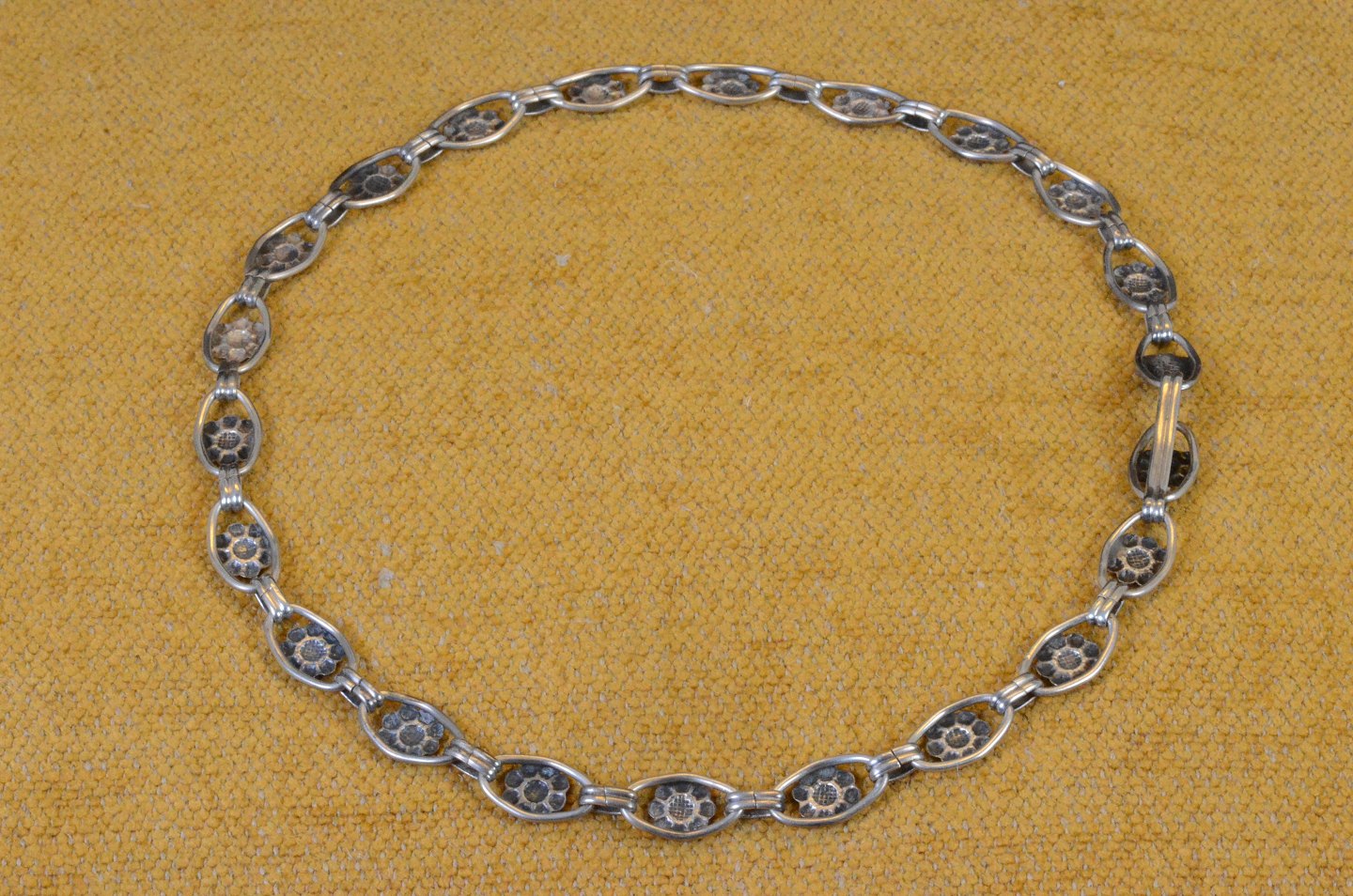 Collier necklace articulated in ovals attached silver flowers, assembled with double joints. Stamped 830S CAC. C.A.Christensen Eftf - Copenhagen Denmark 1937 - 1947. Sizes .: L: 46 cm H: 1 cm. Art nr 75