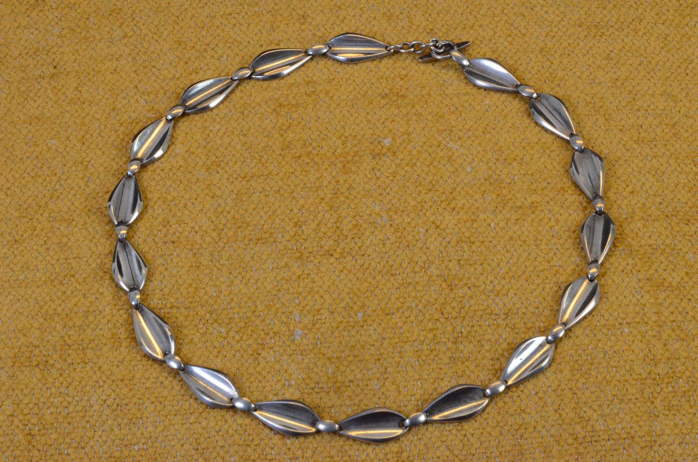 Collier halskæde sølv, leddelt i konkave led og samlet af konvekse dele. Collien er lukket med sølvplader på under siden. Stemplet 925 HS. Herman Siersbøl. Str.: 40 cm. Art No. 81