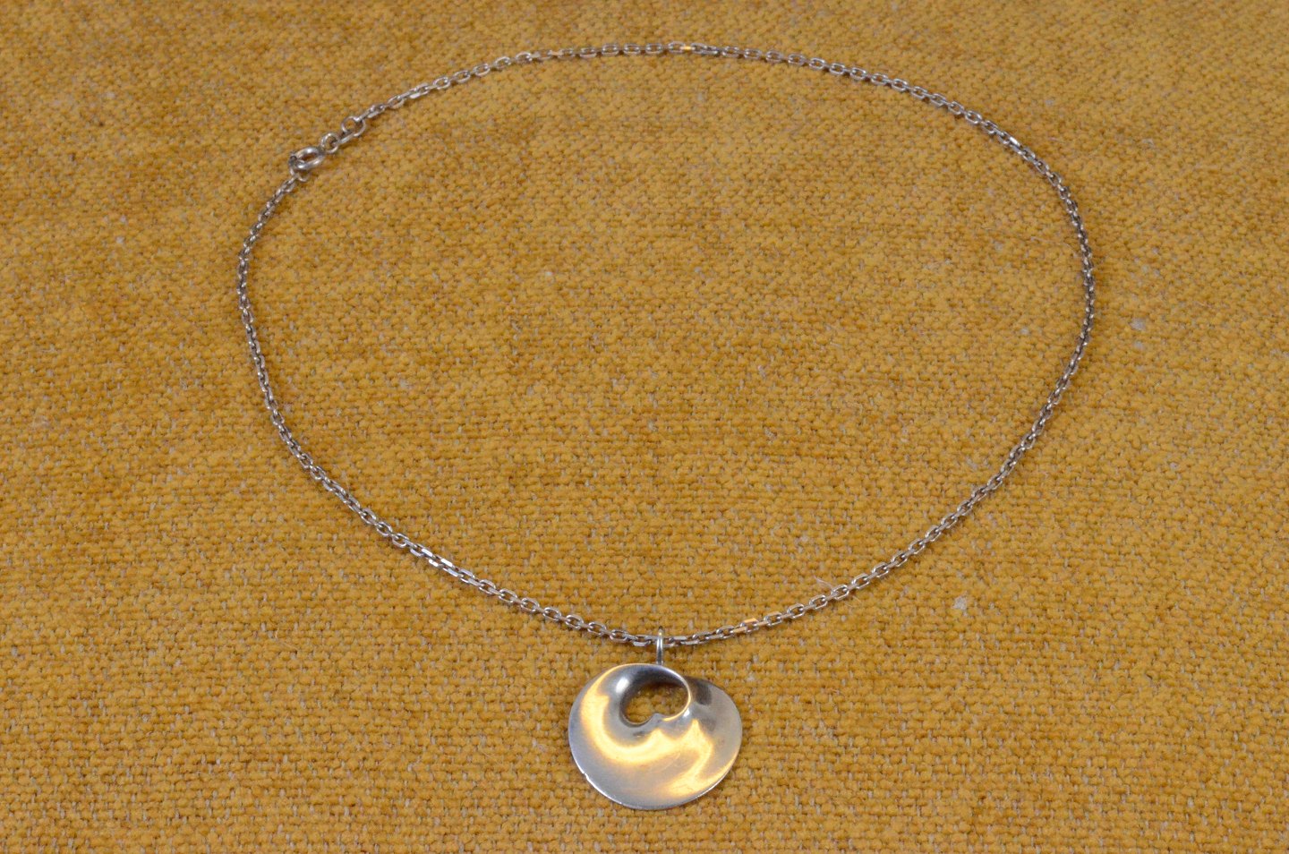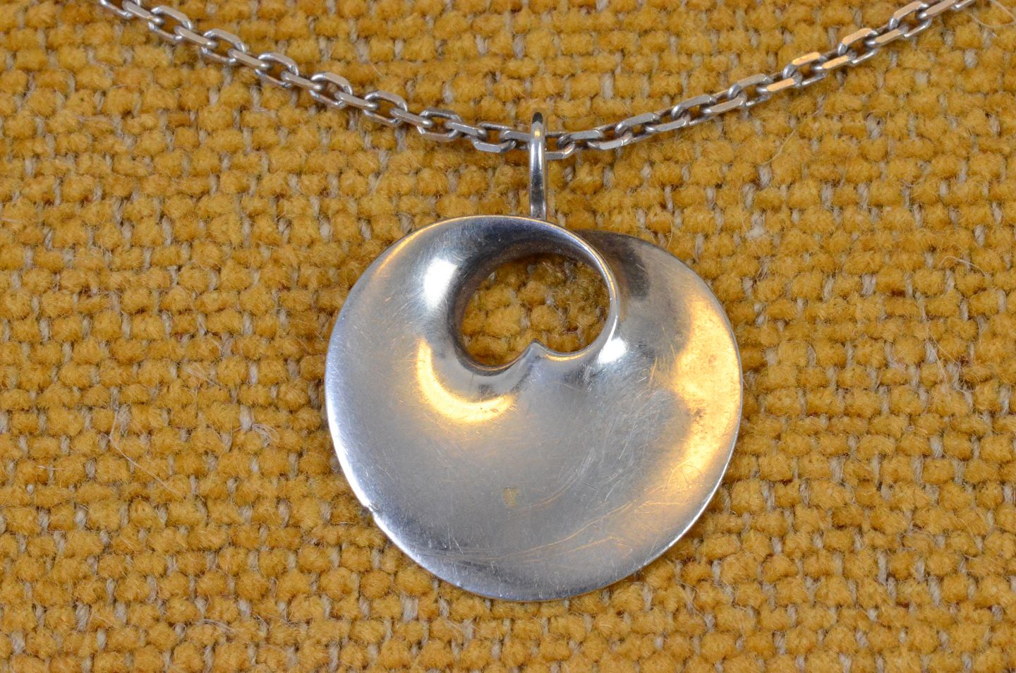 Sølvvedhæng, Hidden Heart, designet af Torun hos George Jensen med kæde. Stemplet 825S Torun George Jensens logo, Denmark. Str.: dia 2,5 cm kæde 20 cm. Art No. 85