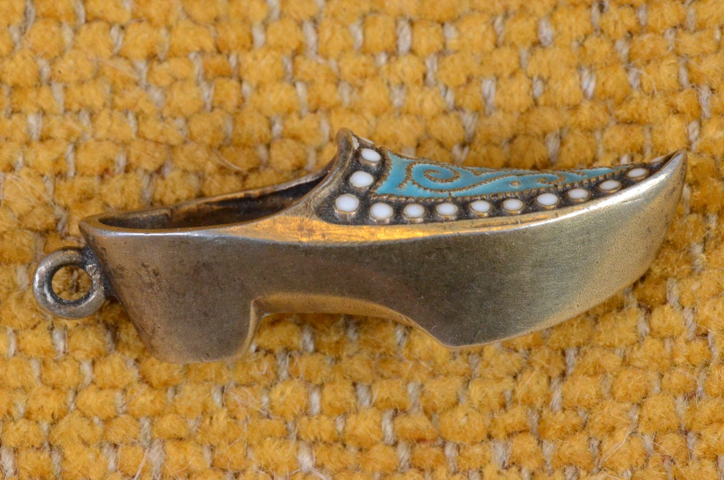 Pendant of Marokken shoe in mini size of silver, gildet silver dekorated with enameled in turquoise, white and black. Stamped 925 S. Str .: 2.5 cm * 1 cm. Art No. 88