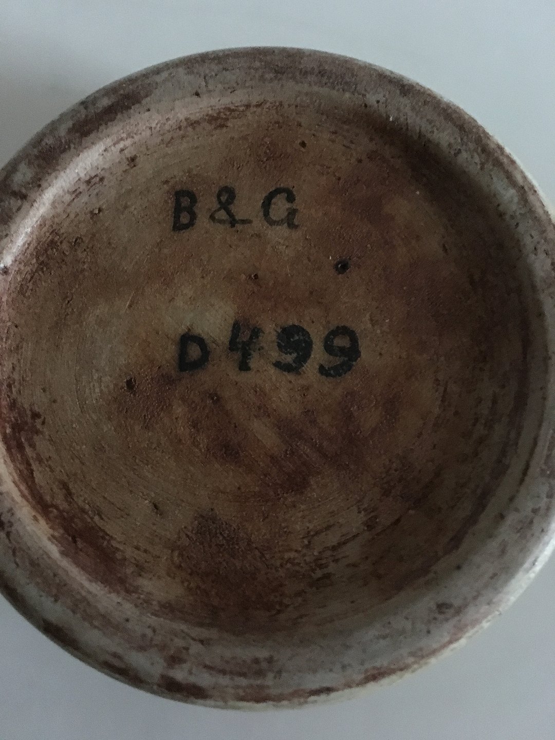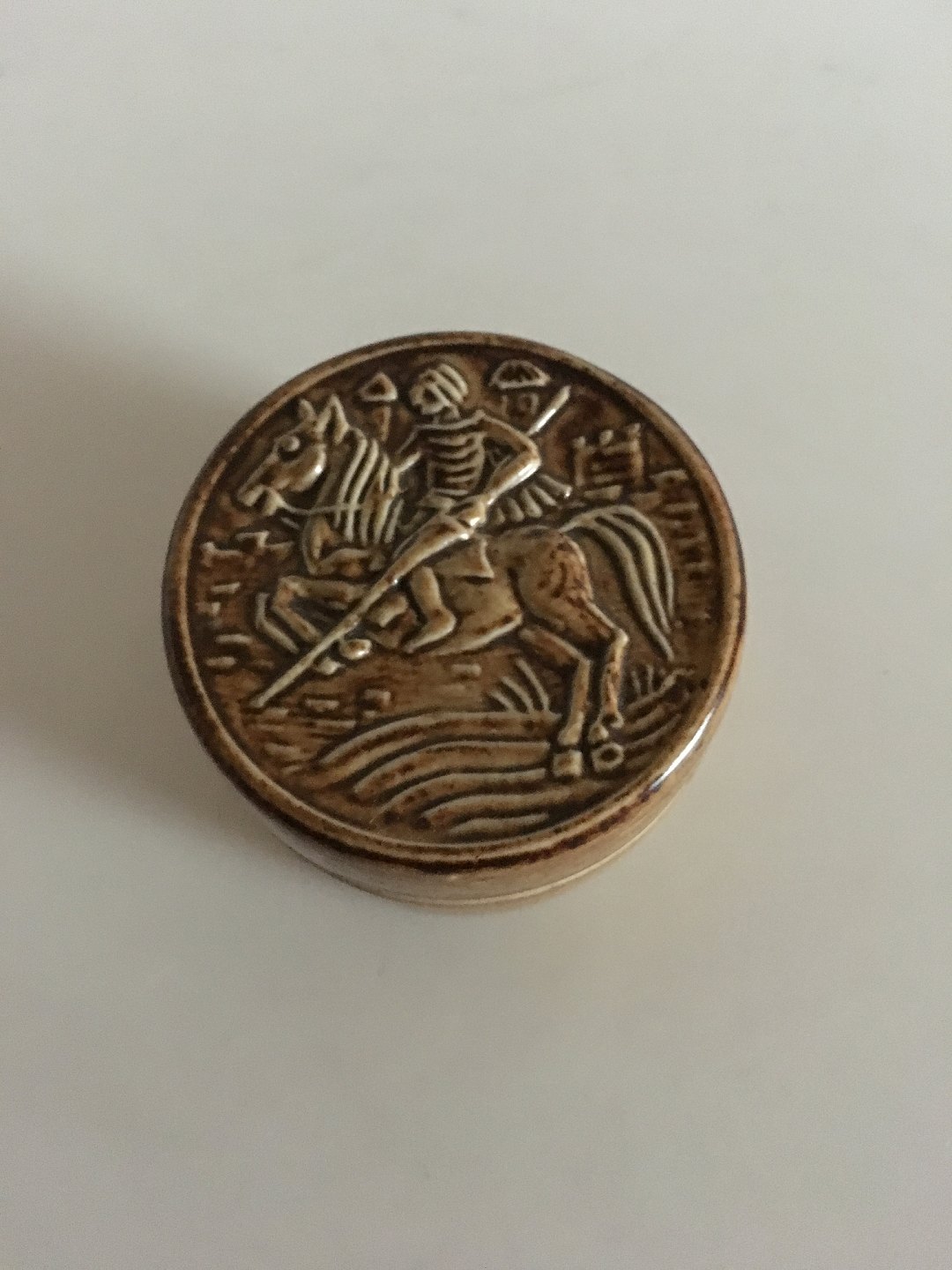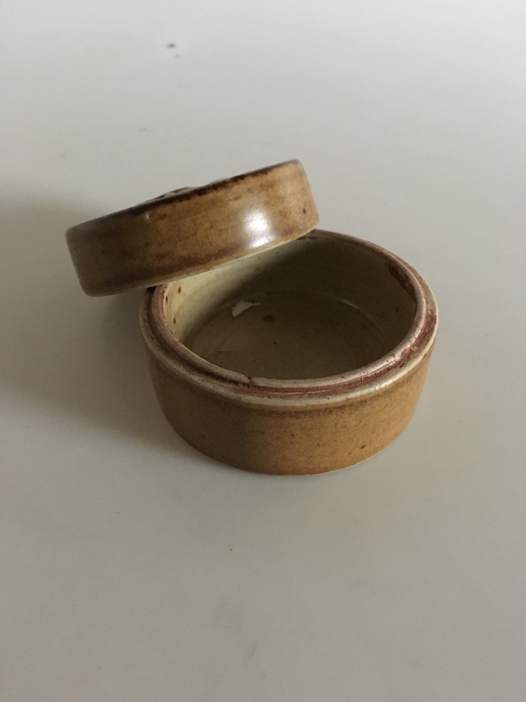 Bing & Grondahl Stoneware Lidded Box No D499. 5 cm H (1 32/32"). 7.5 cm dia (2 61/64"). In good condition