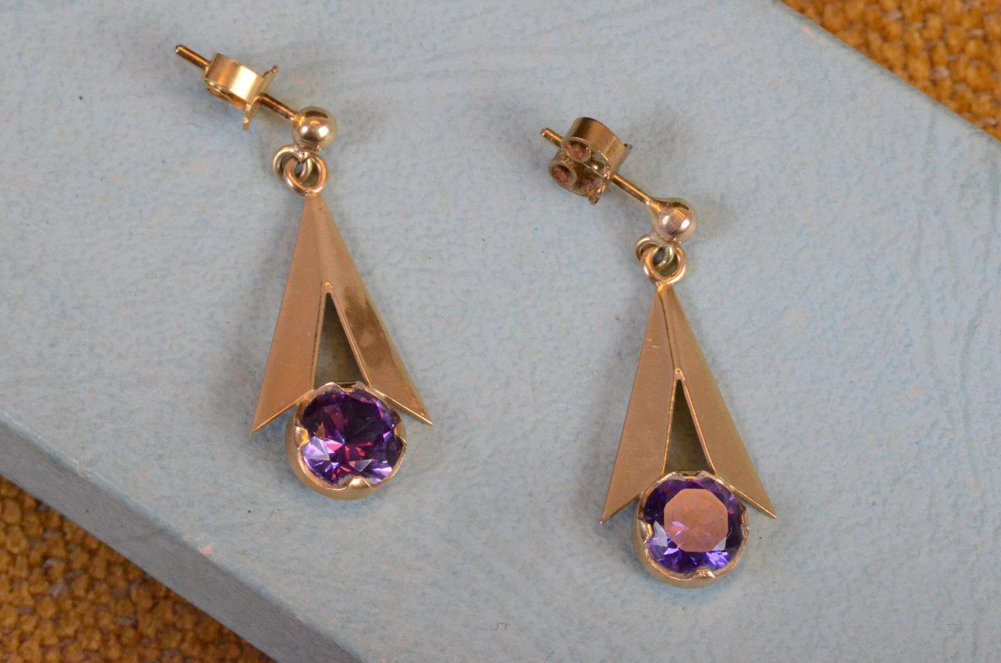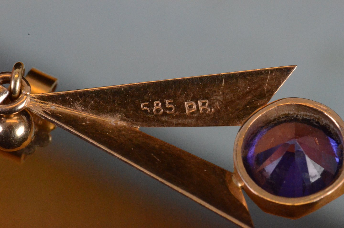 Ørestikker af guld med facetslebne ametyster. Stemplet 585 PRJ. Str.: 2,2 cm. Art. No. 114