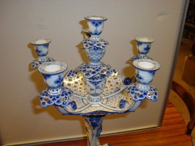 Royal Copenhagen helblonde kandelaber modelnr. 1006 1 sort. i hel og fin stand. Formgivet ca. 1886 af Arnold Krog, kunstnerisk leder på den Kgl. Porcelænsfabrik. H 56 cm.