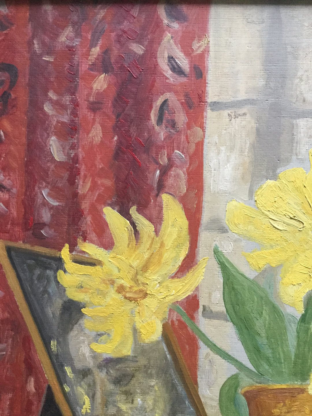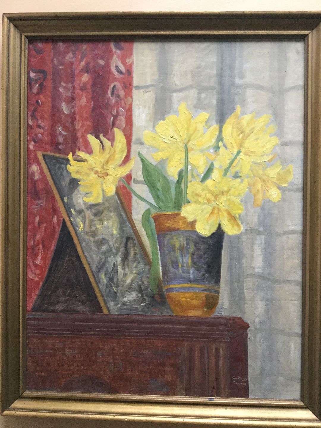 Opstilling på kommode med gule tulipaner i vase 1936.