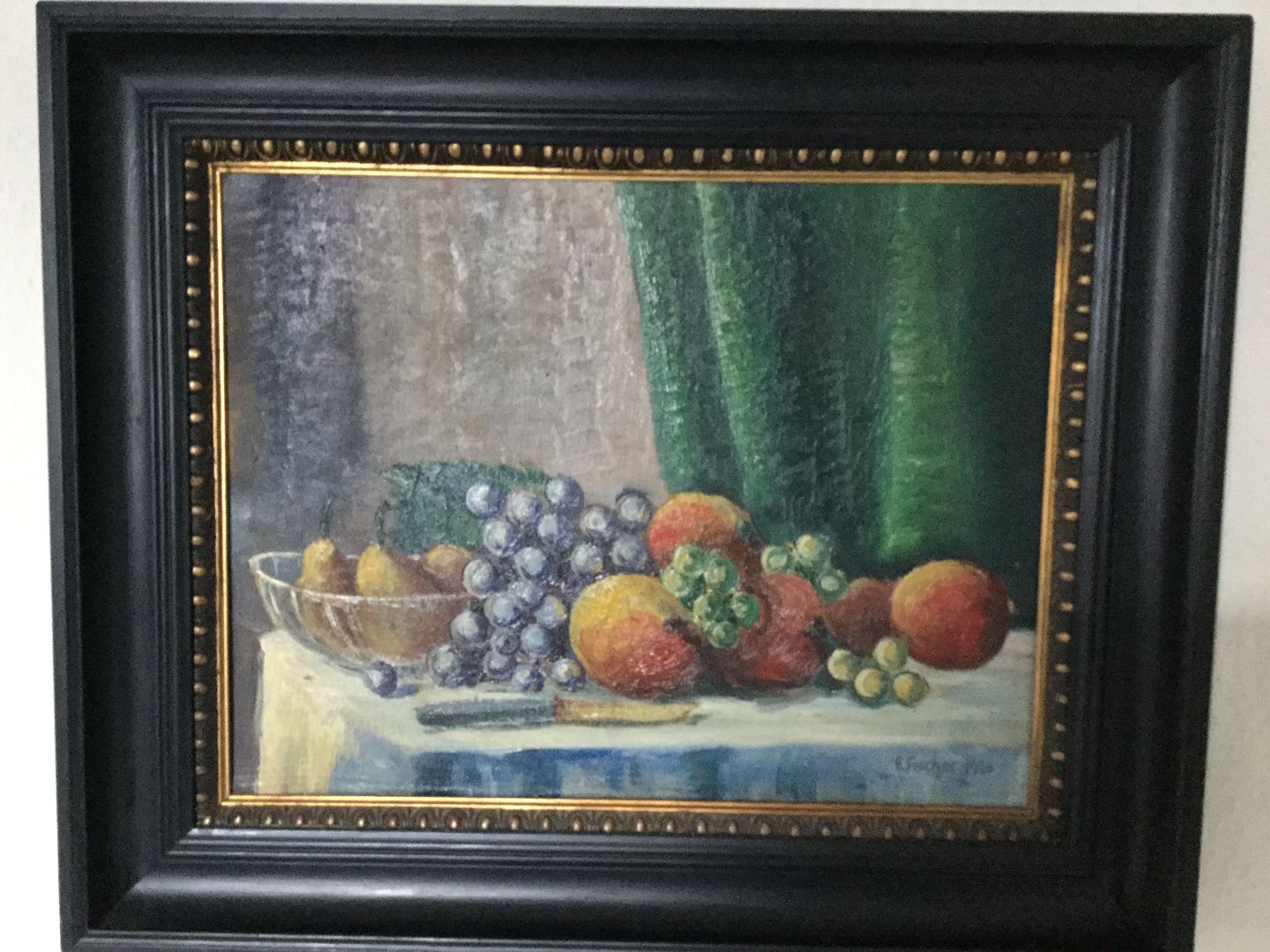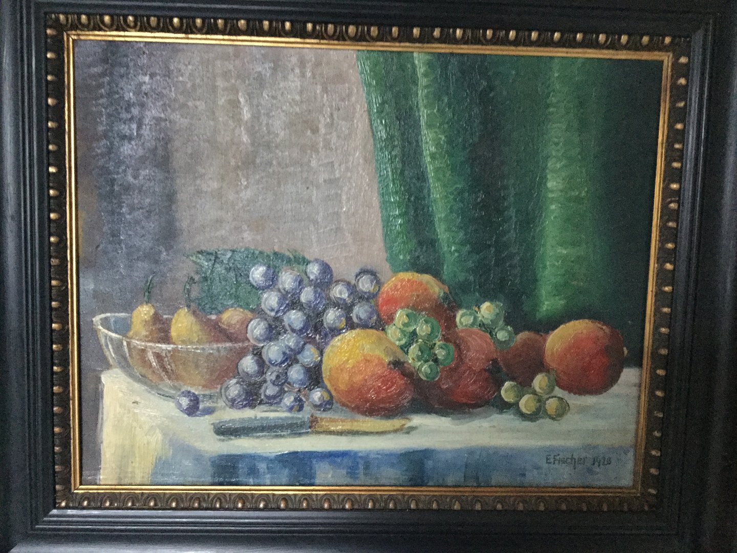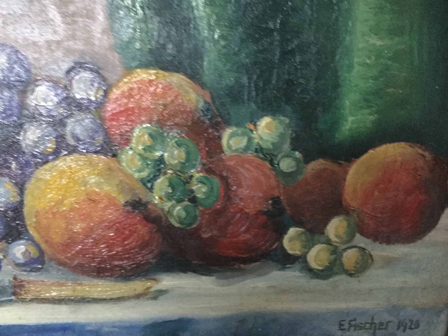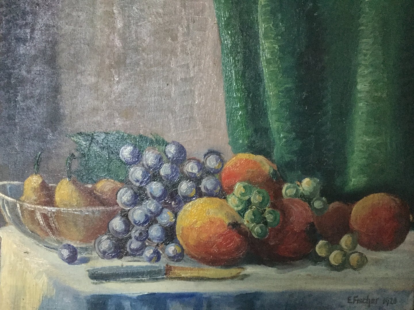 Maleri af Edmund Fischer - Opstilling med frugt på bord 1920.