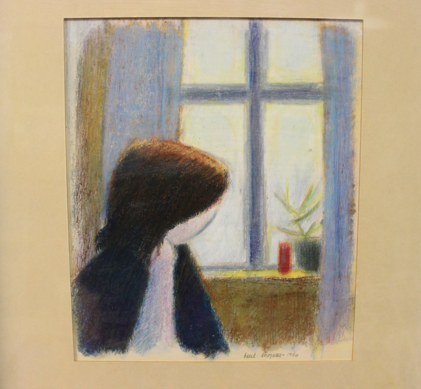 Litografi i farver af Bent Thorsen fra 1980 med ramme i lyse farver.