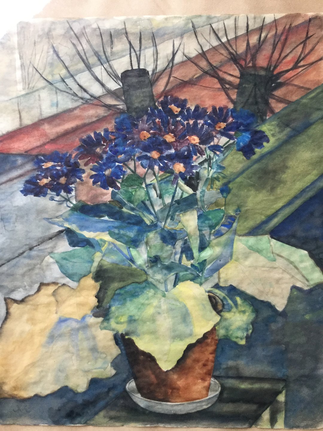 Potteplante (Cineraria eller Fnokurt) i vindueskarm 1926.