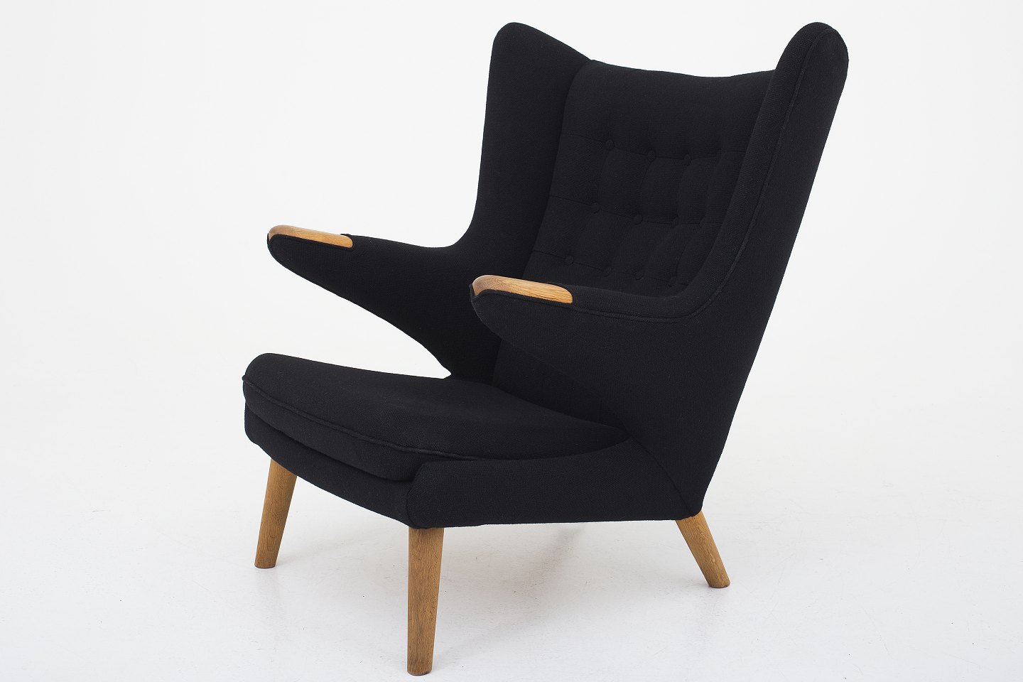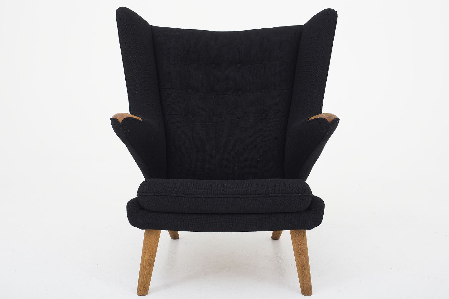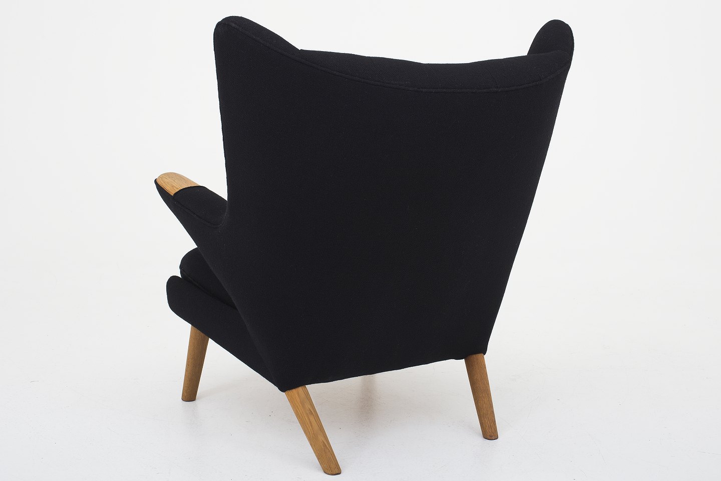 AP 19 - Nybetrukket 'Bamsestol' i sort Hallingdal 65-uld. KLASSIK tilbyder polstring af Bamsestolen med stof eller læder efter eget ønske. Kontakt os venligst for mere information.
