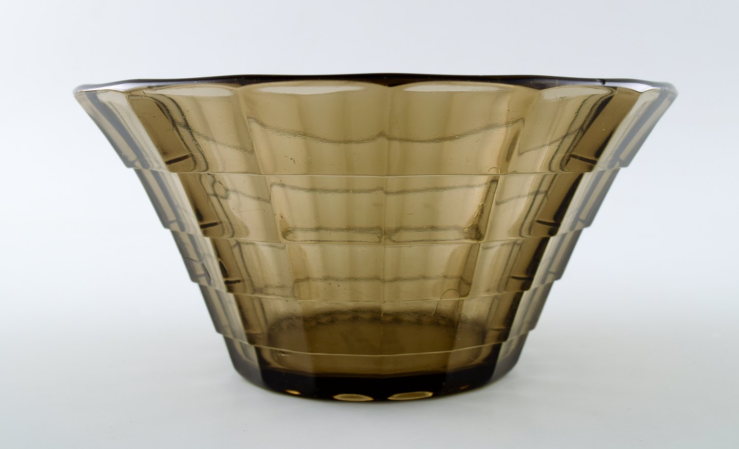 Topaz coloured bowls with rigdes. Simon Gate for Sandvik/Orrefors, c 1932.