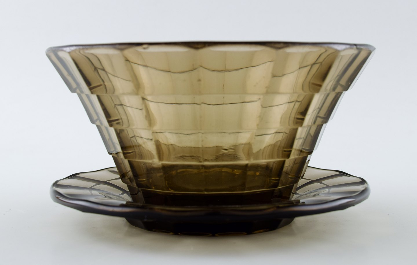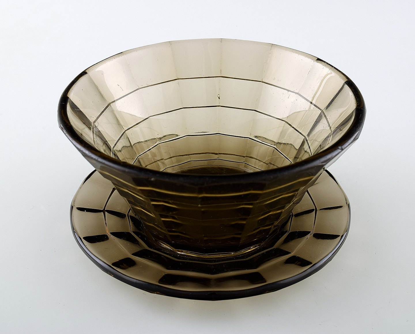 Topaz coloured bowls with rigdes. Edward Hald for Sandvik/Orrefors, c 1932.
