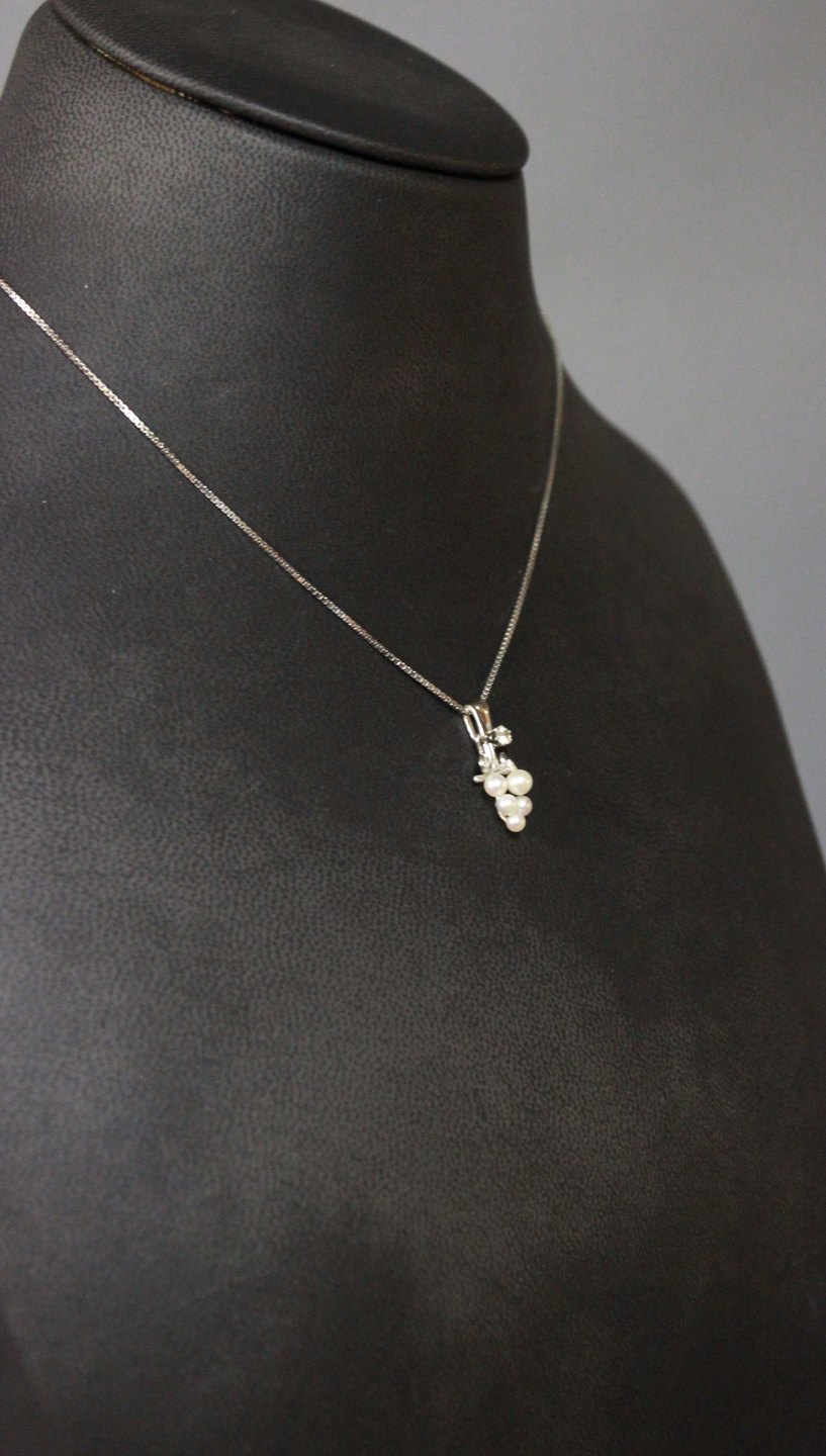 14 kt. vedhæng med 6 små perler og lille brillant, stemplet KH.
