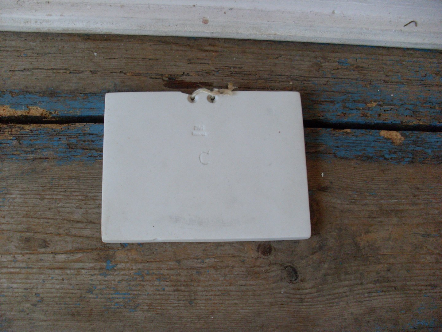 Fremstår med et lille afslag i nederst i højre hjørne, samt på bagsiden.