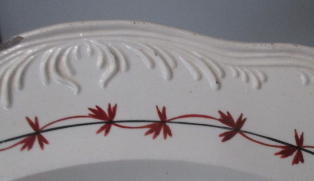 English earthenware dish, 18th century. Leeds. Cream - with hand painted decorations of landscapes. Dia .: 33.5 cm.