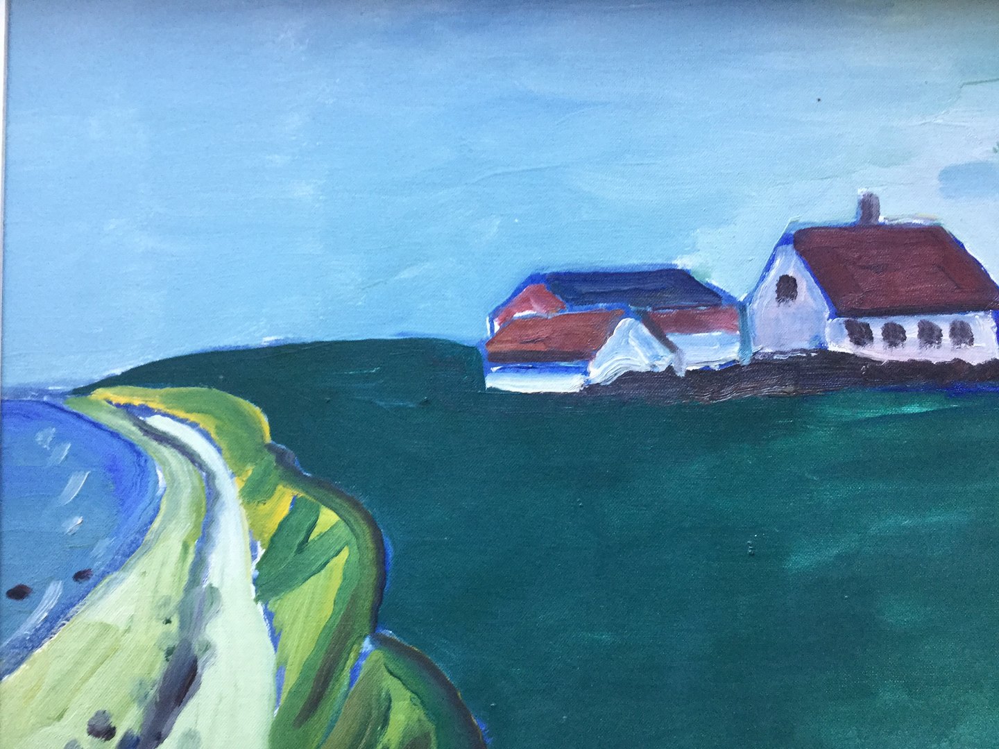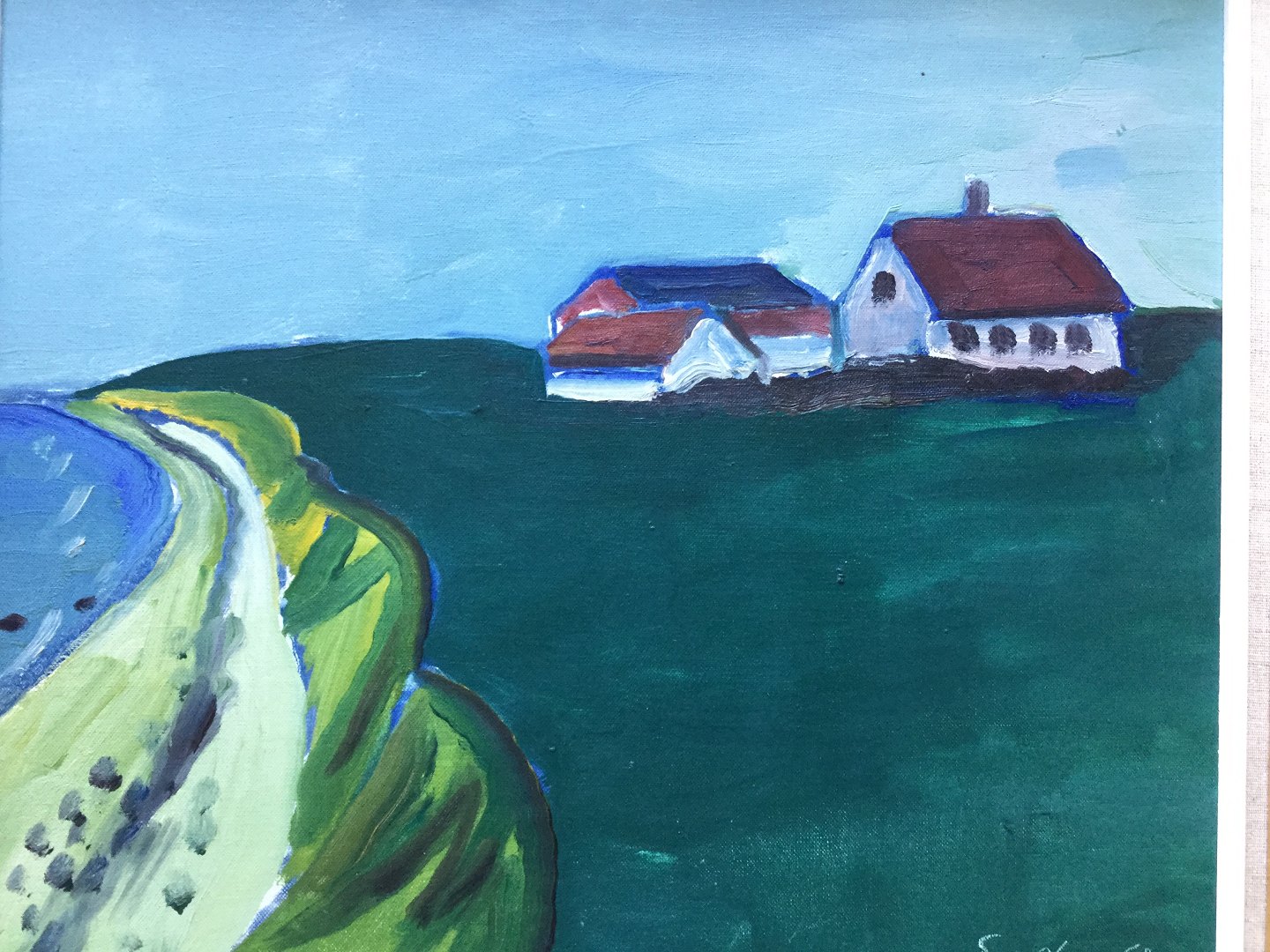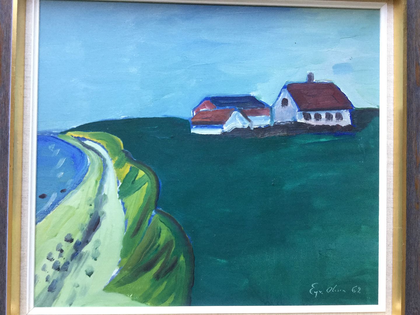 Maleri af Eyvind Olesen - Kystparti med ejendom 1967.