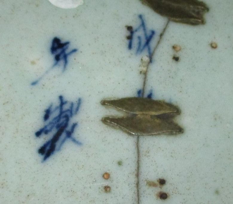 Chinese plate, blue and white porcelain, Chongzhen 1628 - 1644. Dia .: 27 cm. Stamped. Furthermore, signed on the front.