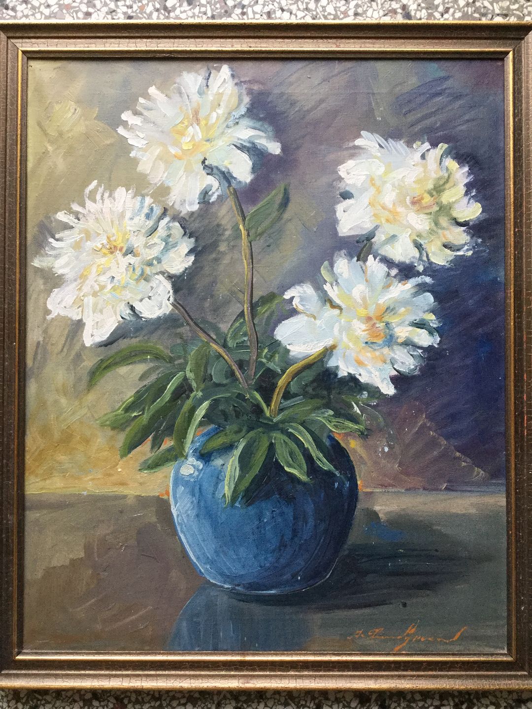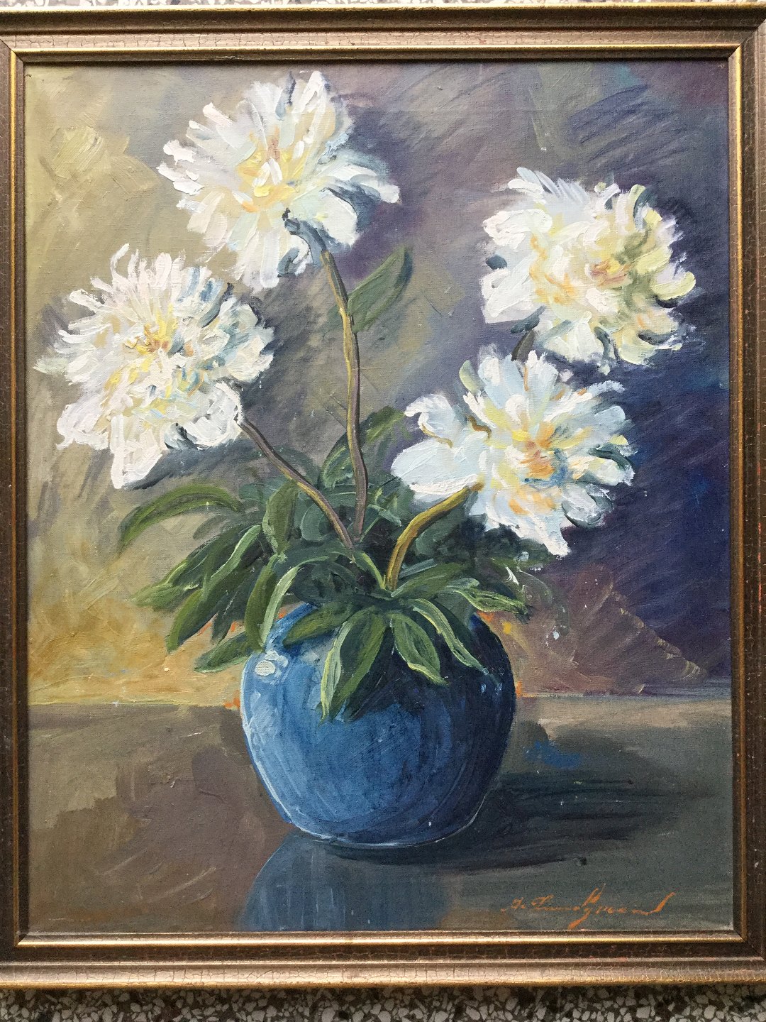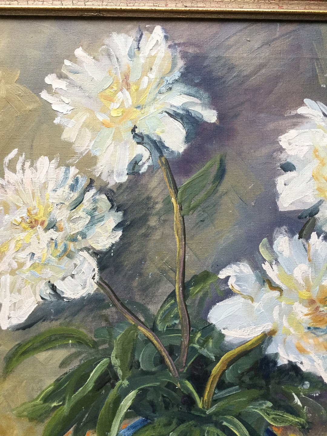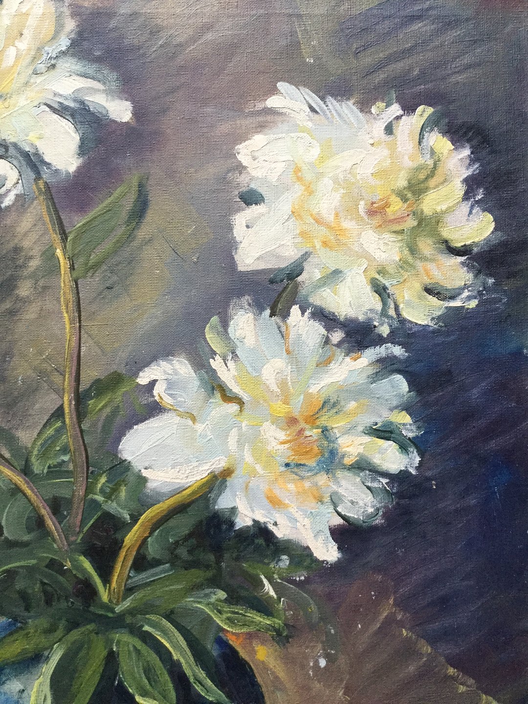 Maleri af Aksel Lundgreen - Hvide pæoner i vase.