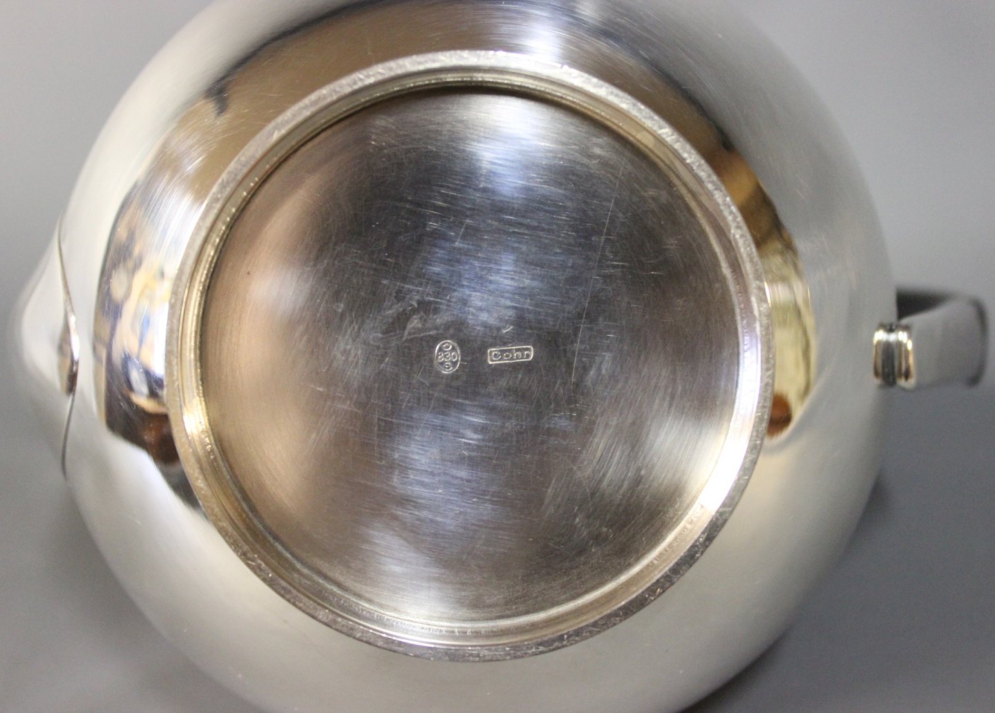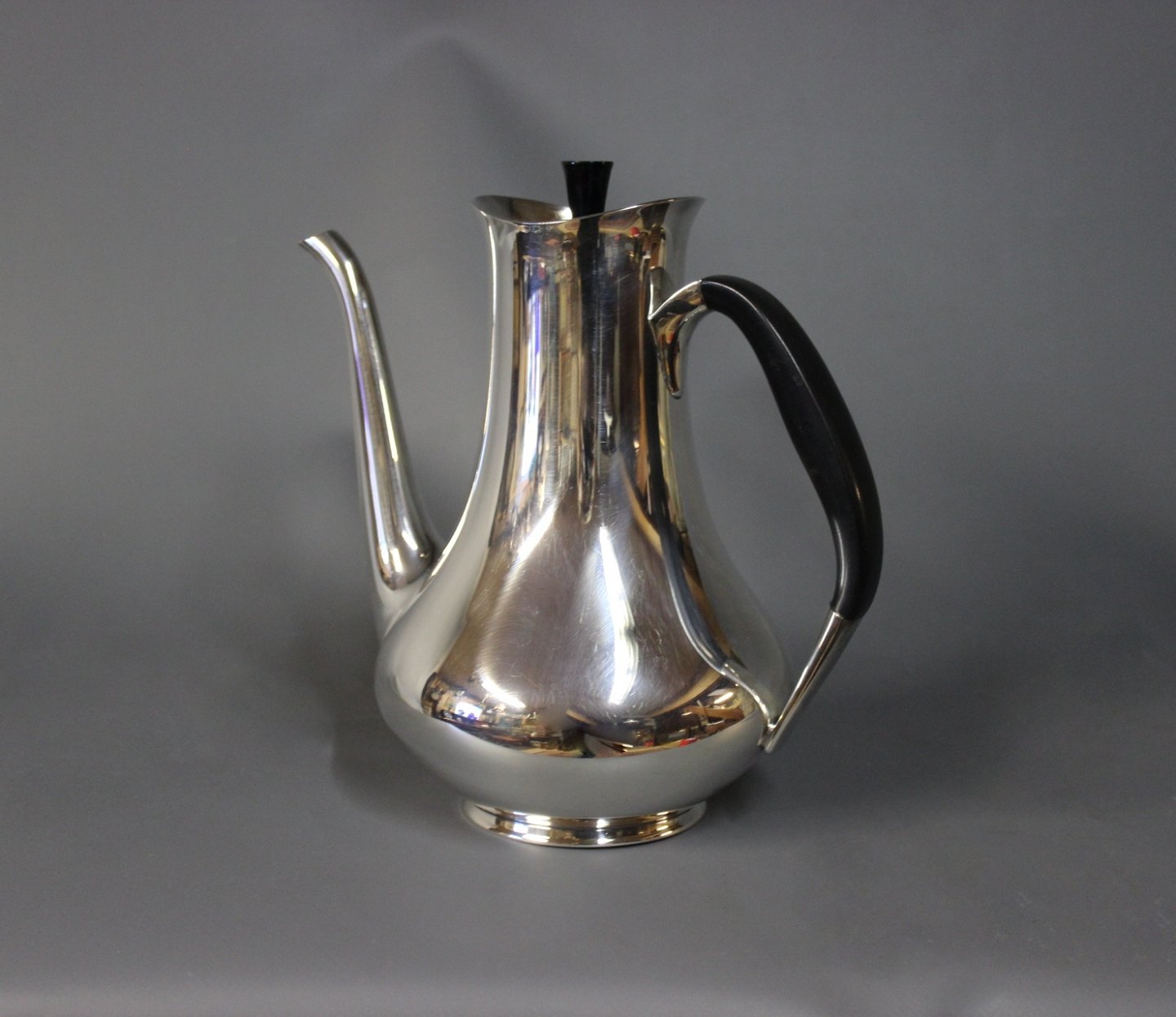 Coffee serving set consisting of Coffee jug with Black Ebony handle, cream jug and sugar bowl, either in 830 s or hallmarked silver.