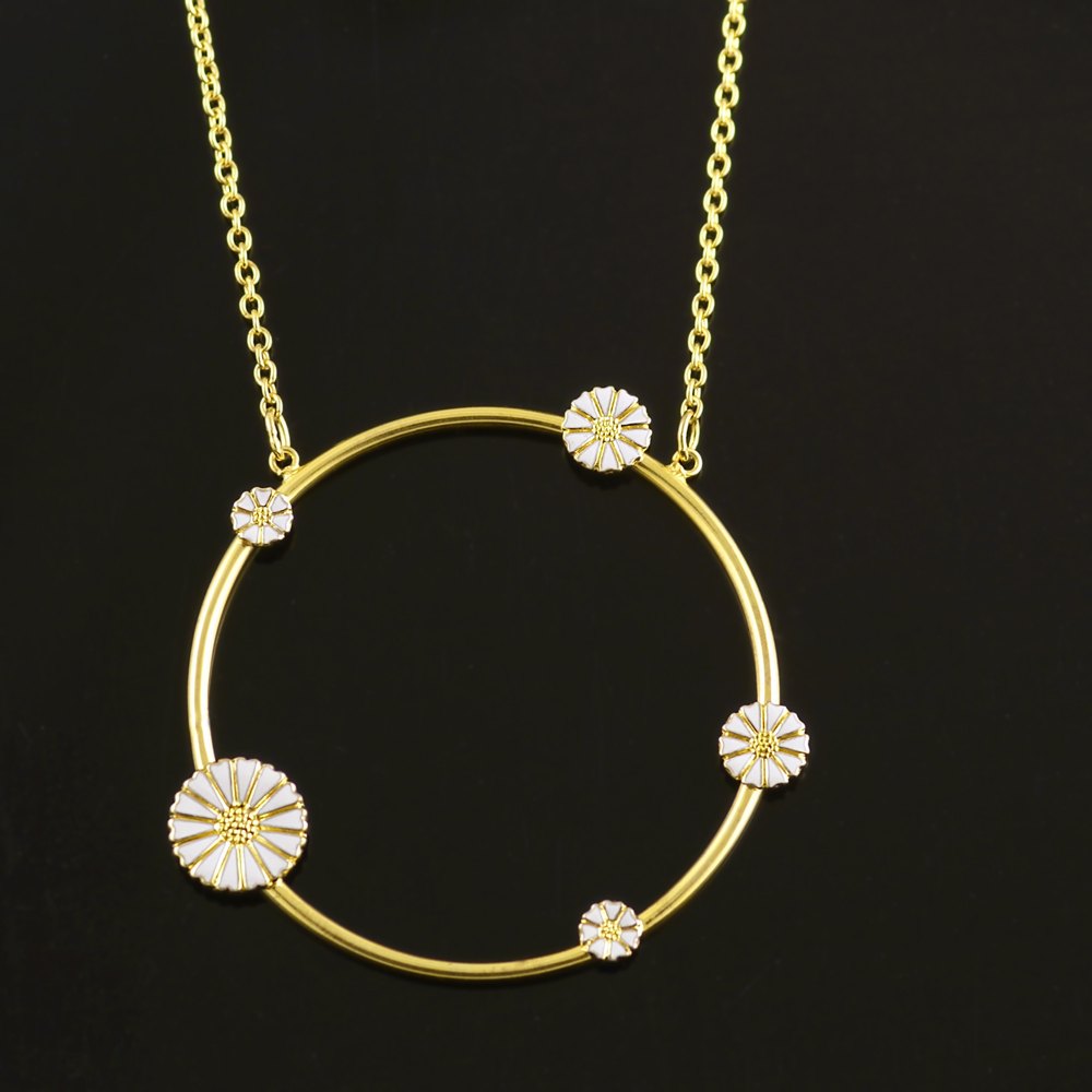 Bernhard Hertz Marguerit / Daisy Halskæde i forgyldt Sterling Sølv med hvid emalje.