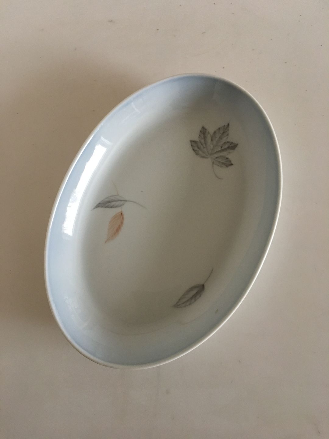 Bing & Grøndahl Løvfald Ovalt Fad No 18. Måler 25 cm. I fin hel stand.