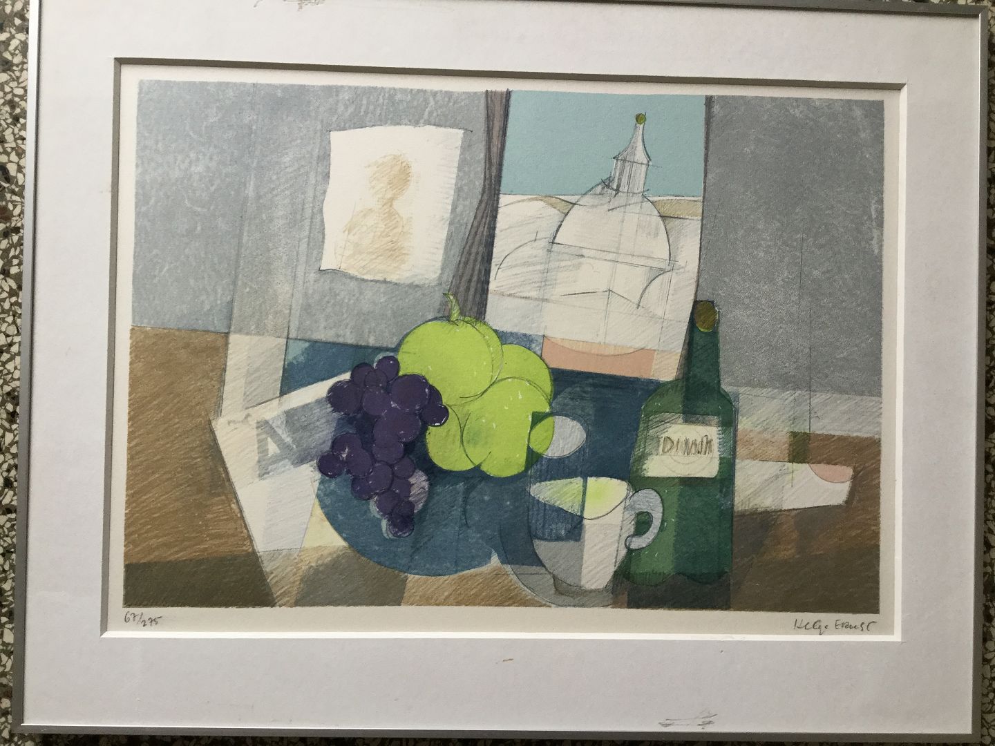Text available in Danish: Farvelitografi af Helge Ernst - Komposition.