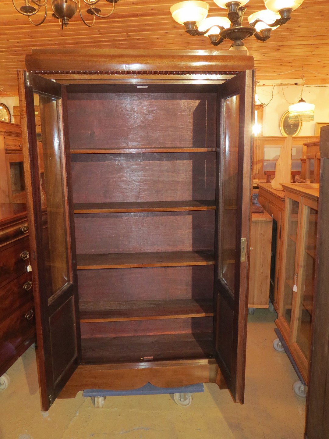 Bogskab Mahogni med 2 glaslåger og hylder restaureret håndpoleret mål H 163, D 33, B 96,cm. 2237-P