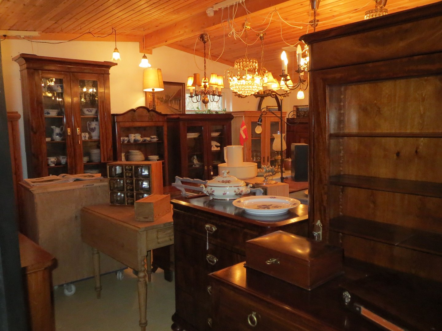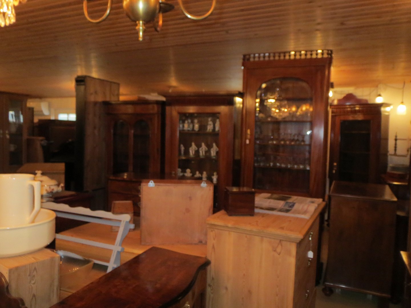 Stor salgsudstilling med restaurerede møbler håndpolerede mahognimøbler, afsyrede fyrretræsmøbler, malede træmøbler, kun originale gamle og antikke møbler.