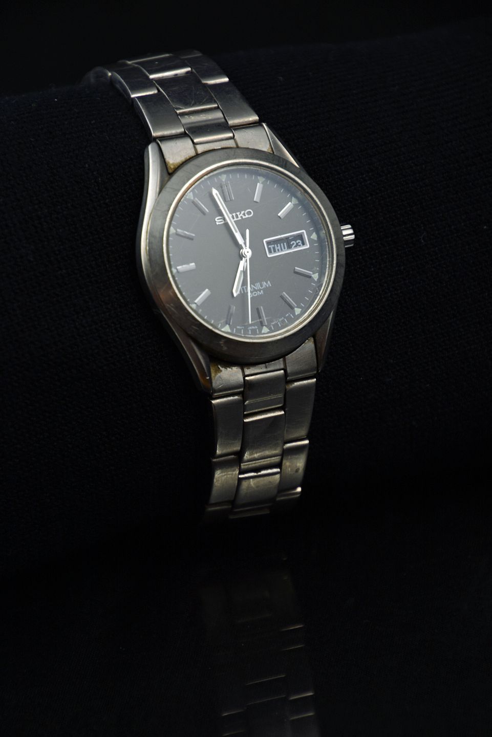 SEIKO titanium armbåndsur nr. 293744 med datoviser.