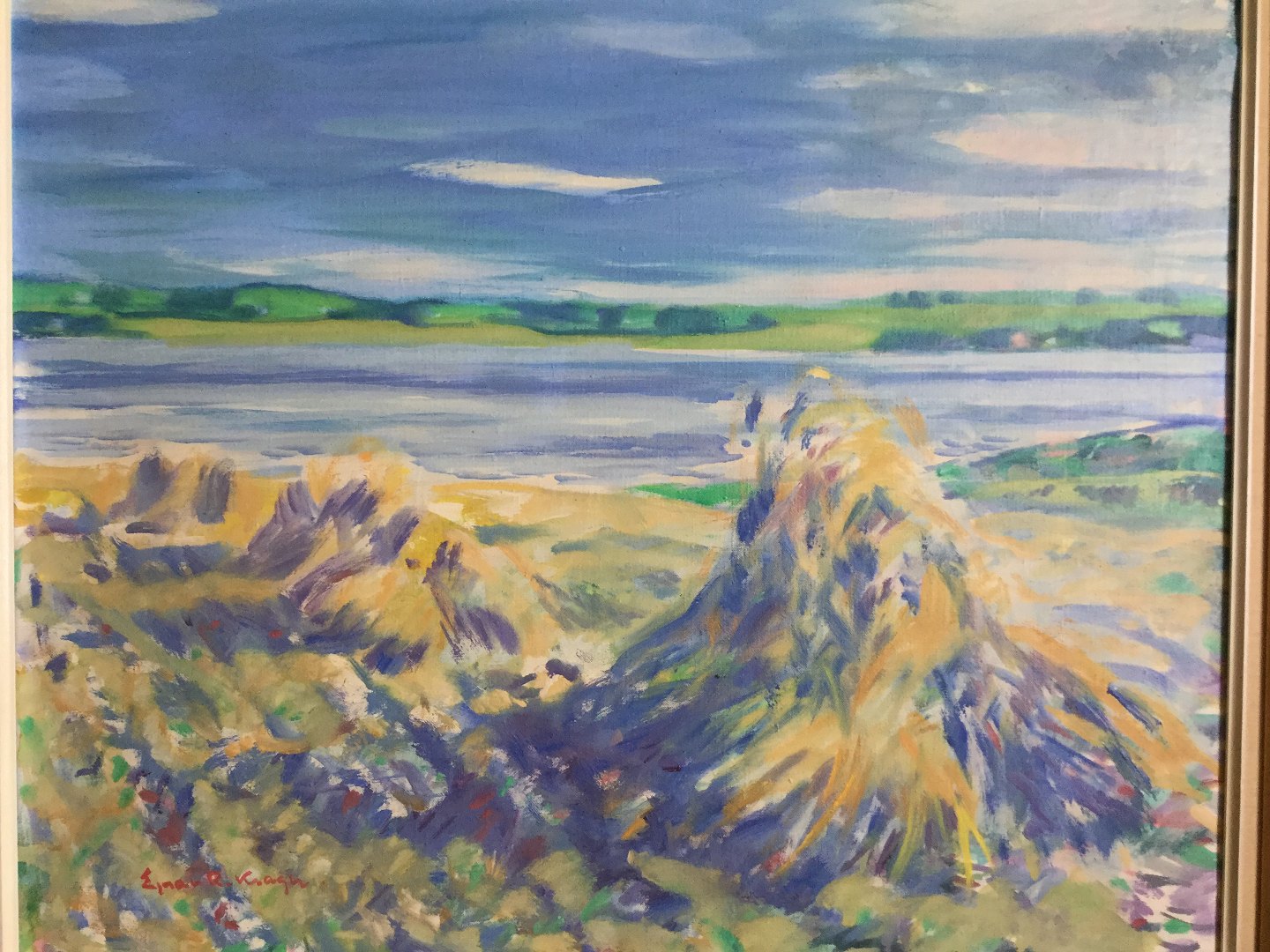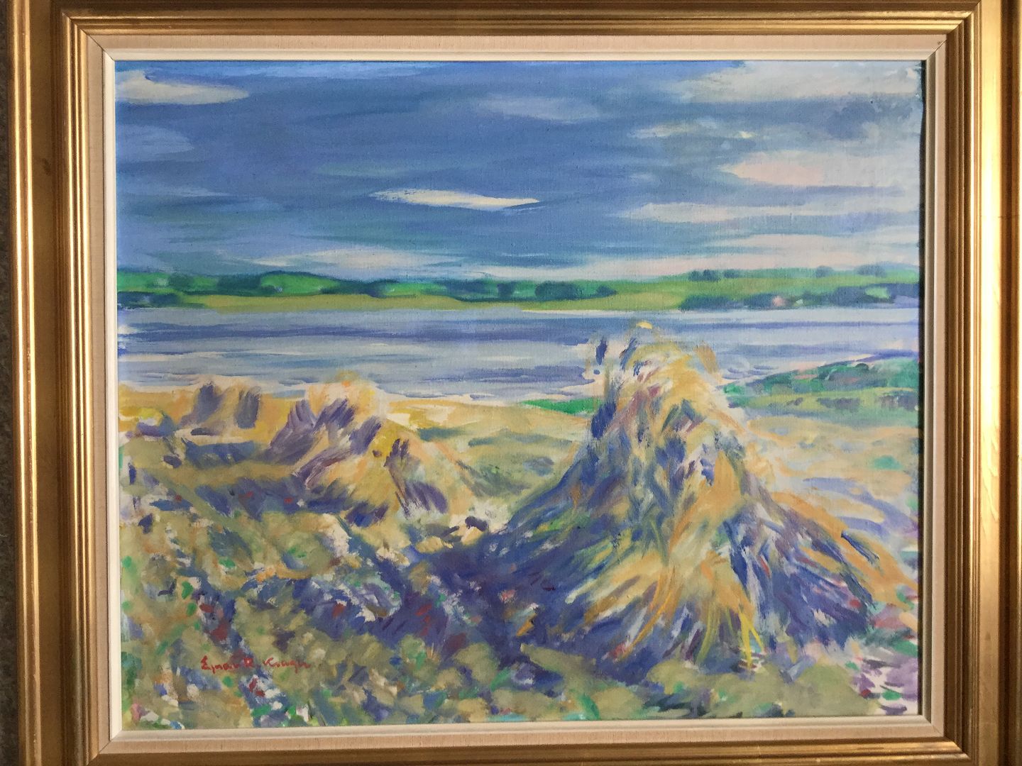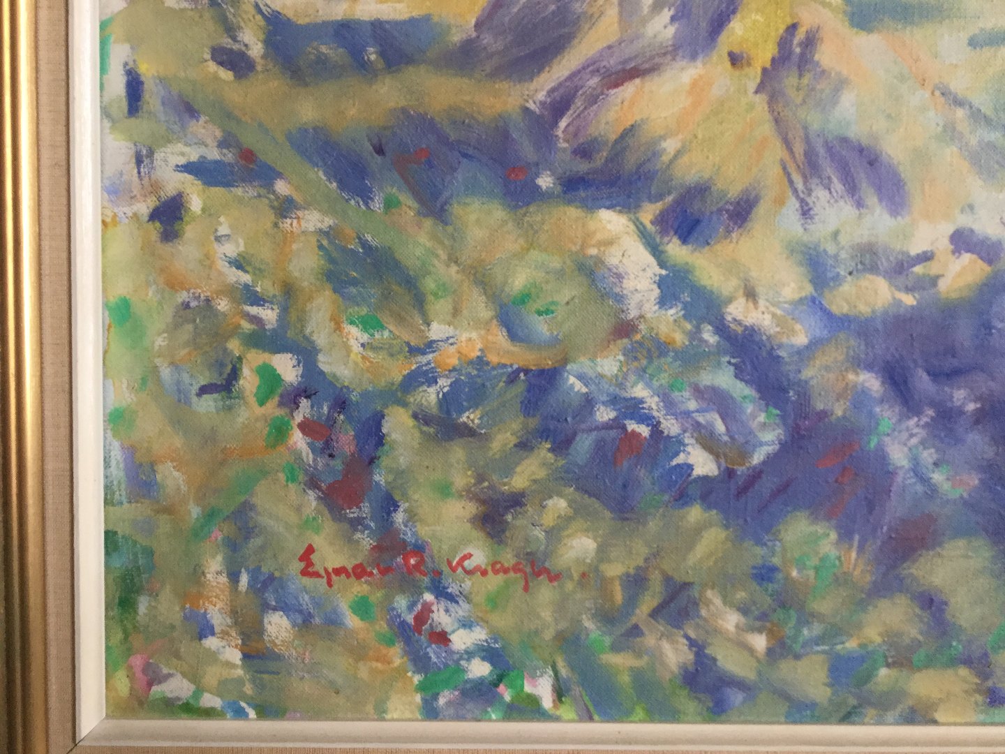 Maleri af Ejnar R. Kragh - Høstparti med sø i baggrunden.