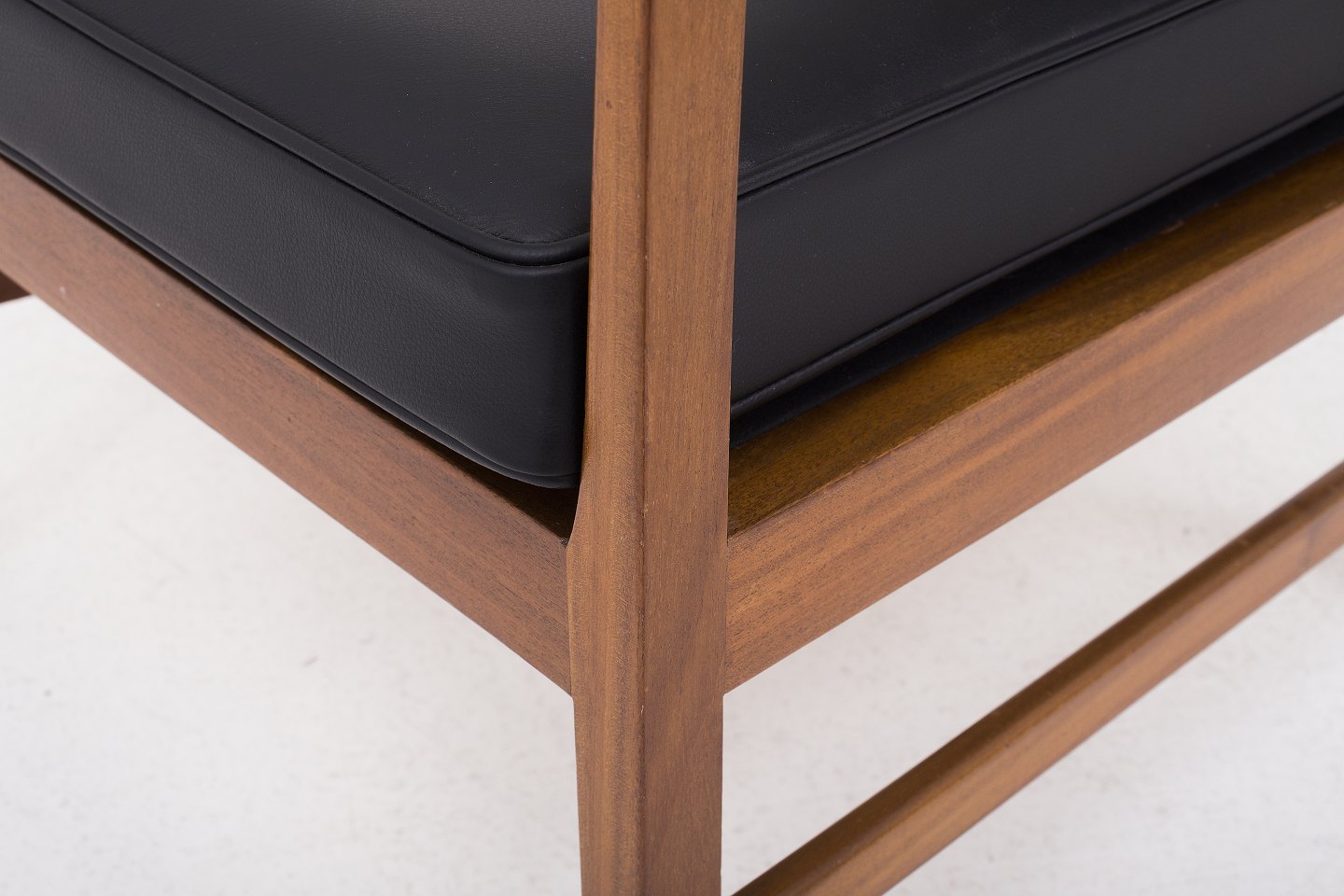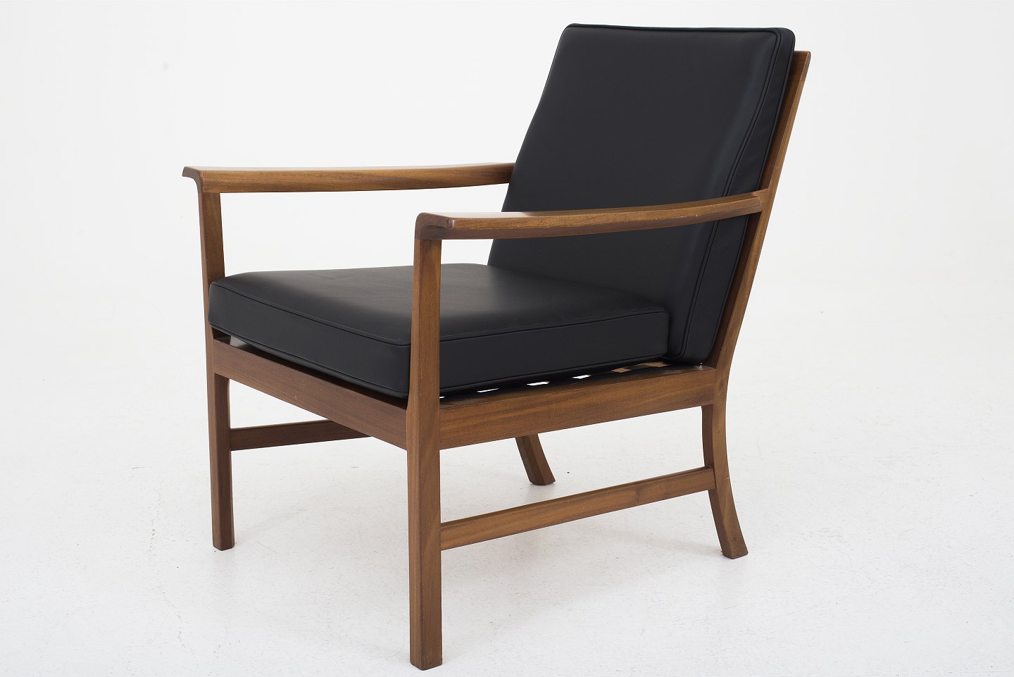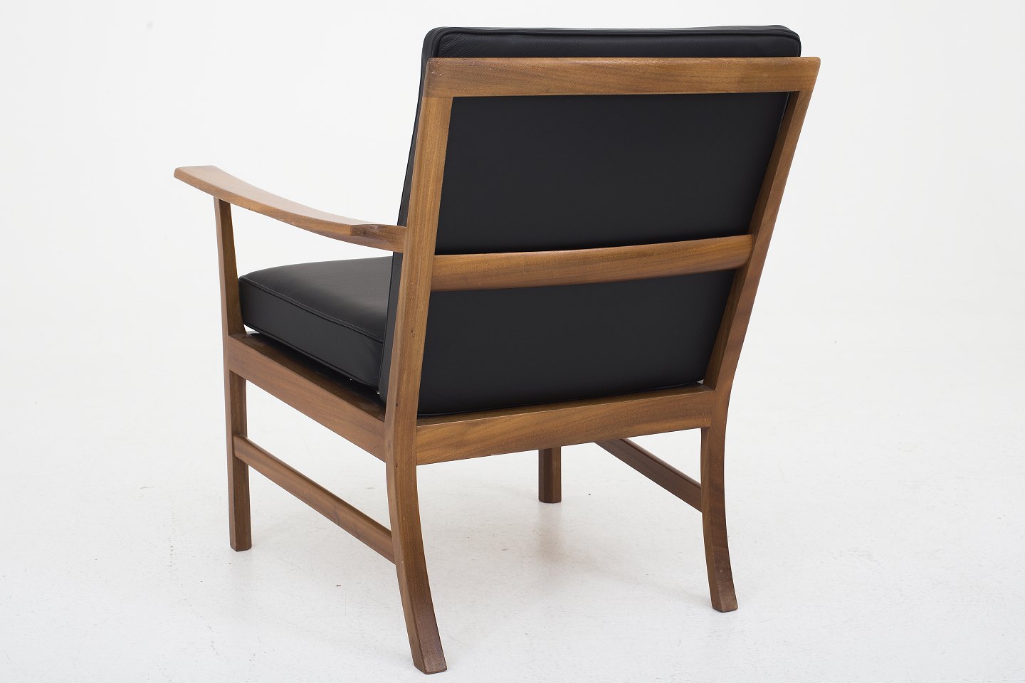 Lænestol i mahogni, nybetrukket med sort Savanne-læder