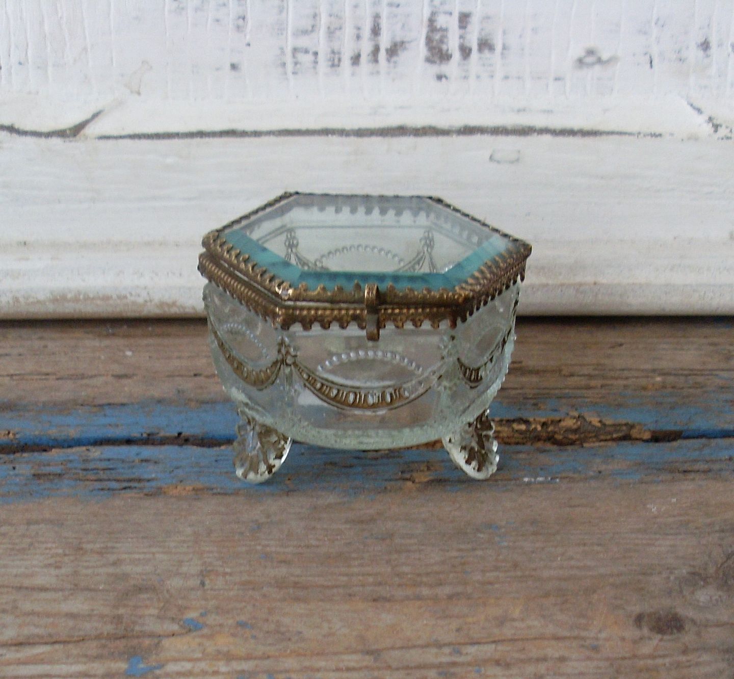 1800tals sjældent fransk skrin med "fødder" i glas.