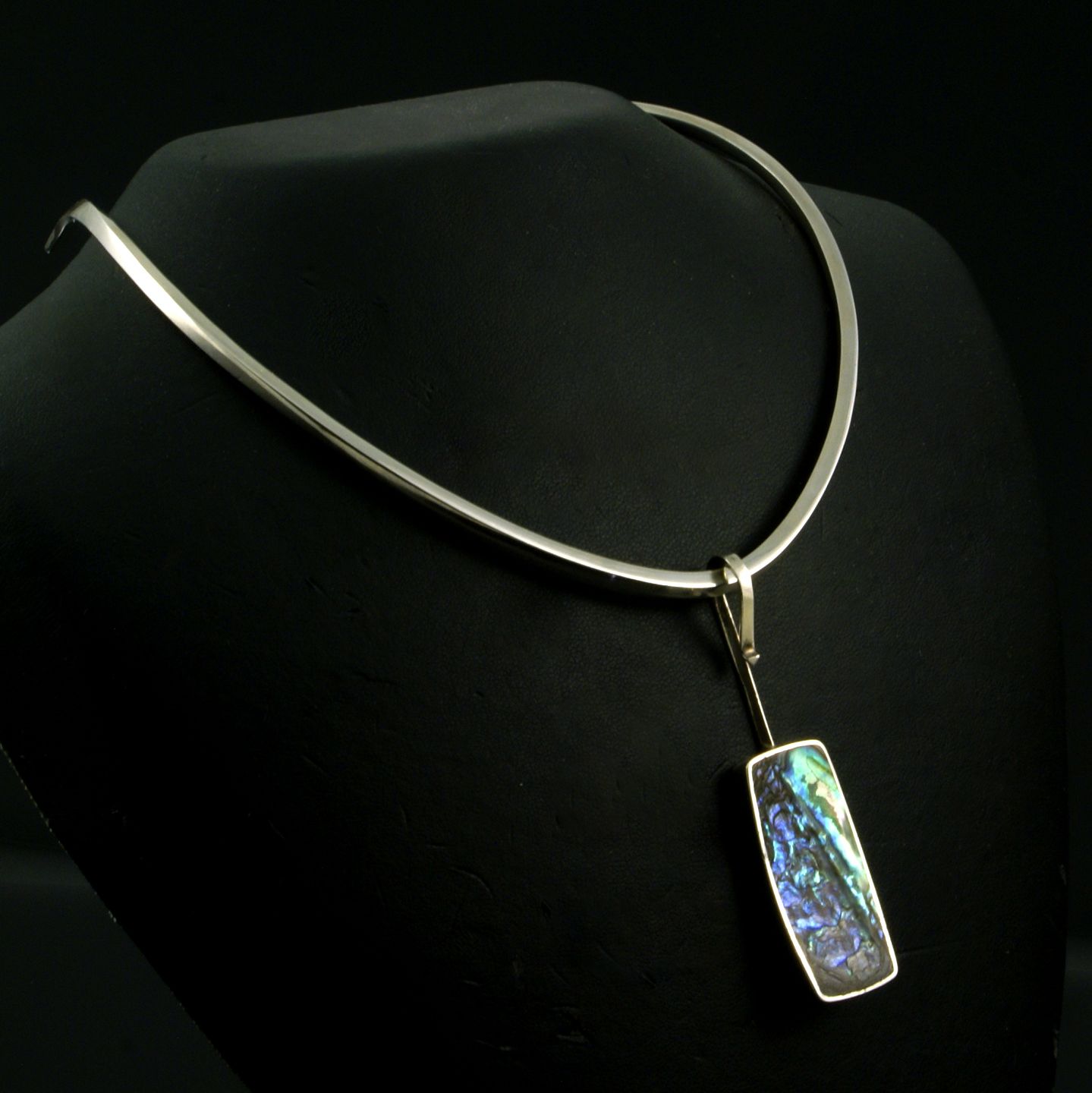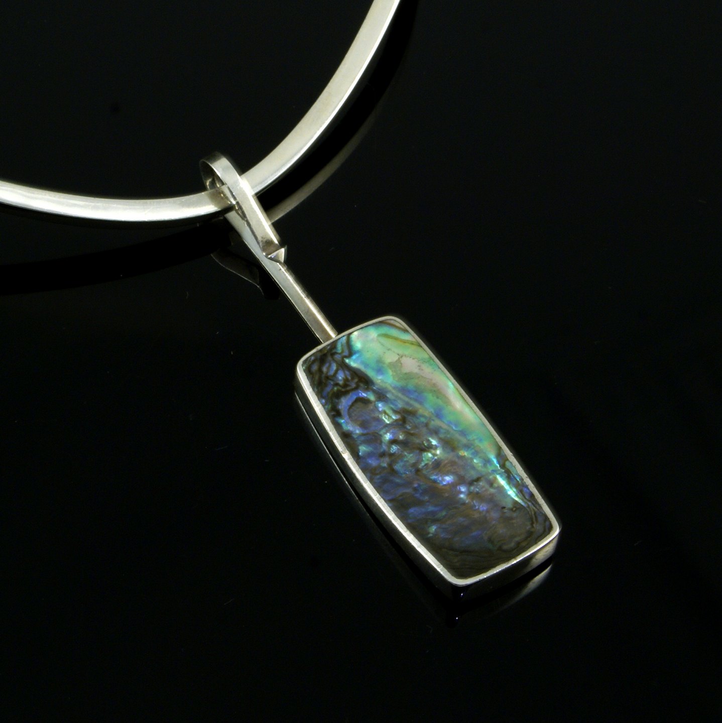 Palle Bisgaard - Denmark. Sterling Silver Neckring #6 with Abelone Pendant #8. 1960s