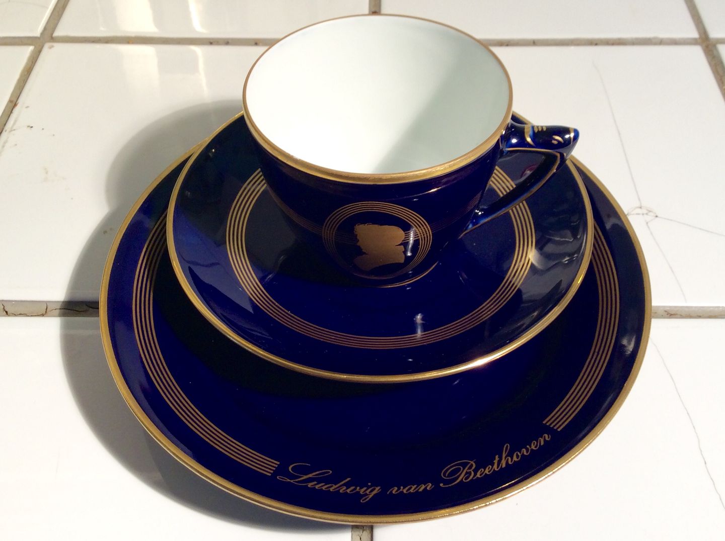 Bing & Grøndahl, Komponist, Trio kaffesæt, Motiv nr. 1 Ludwig van Beethoven, 1.Sortering *Perfekt stand*