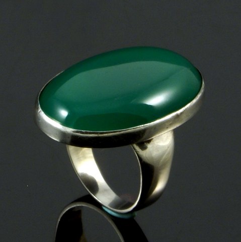 Georg Jensen. Ring i sterling sølv med grøn agat #90B