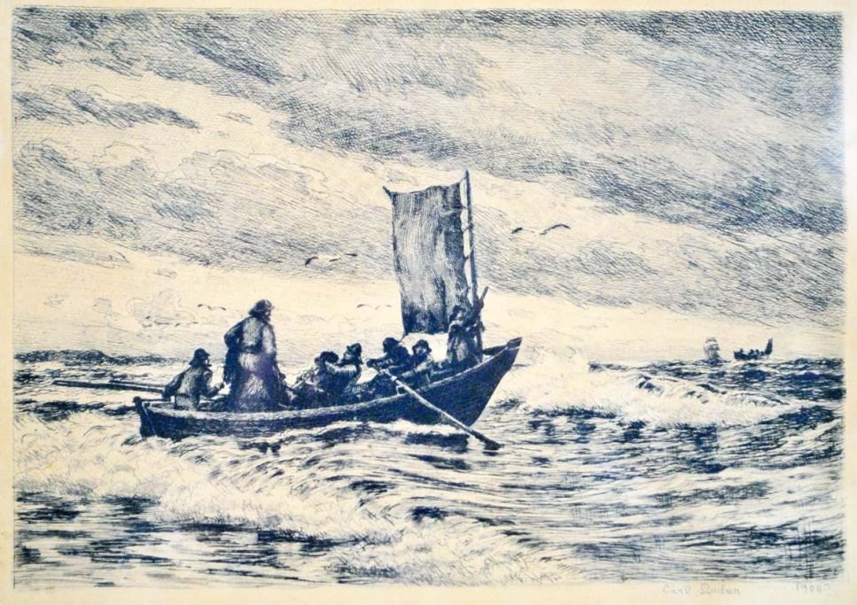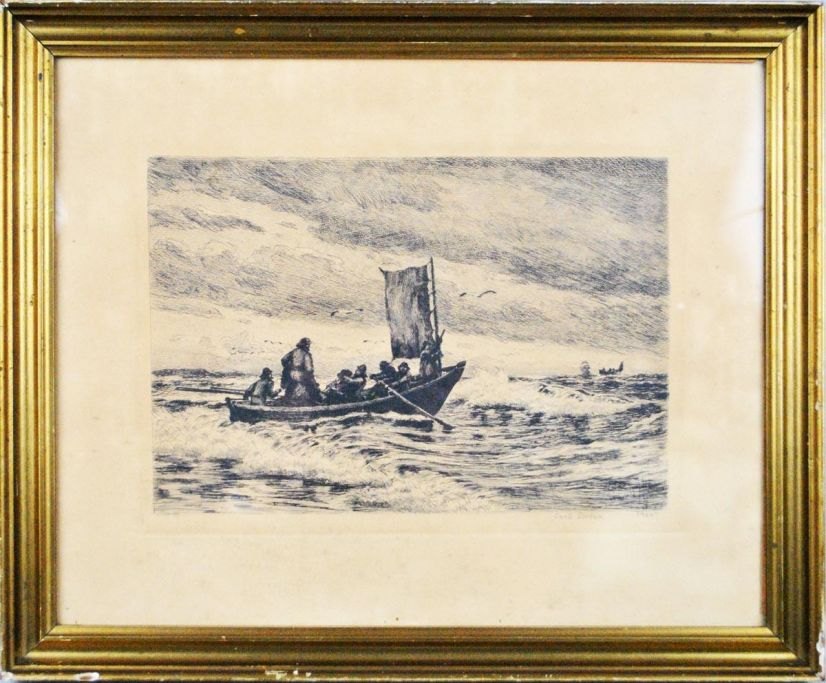 Carl Locher (1851- 1915) Danmark: Marine. Radering. Signeret: Carl Locher 1900. 21 x 28 cm.  Indrammet.  Pt: 3 stk. på lager