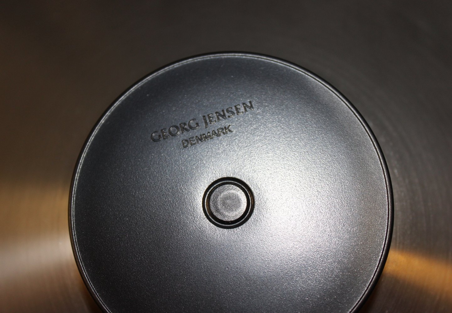 Bowl in brushed steel with foot of plastic by Georg Jensen Denmark.