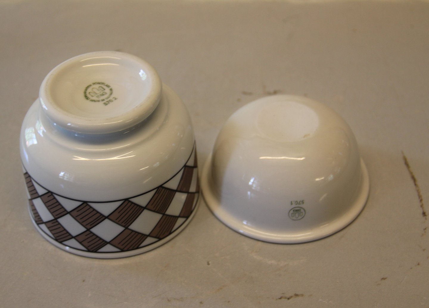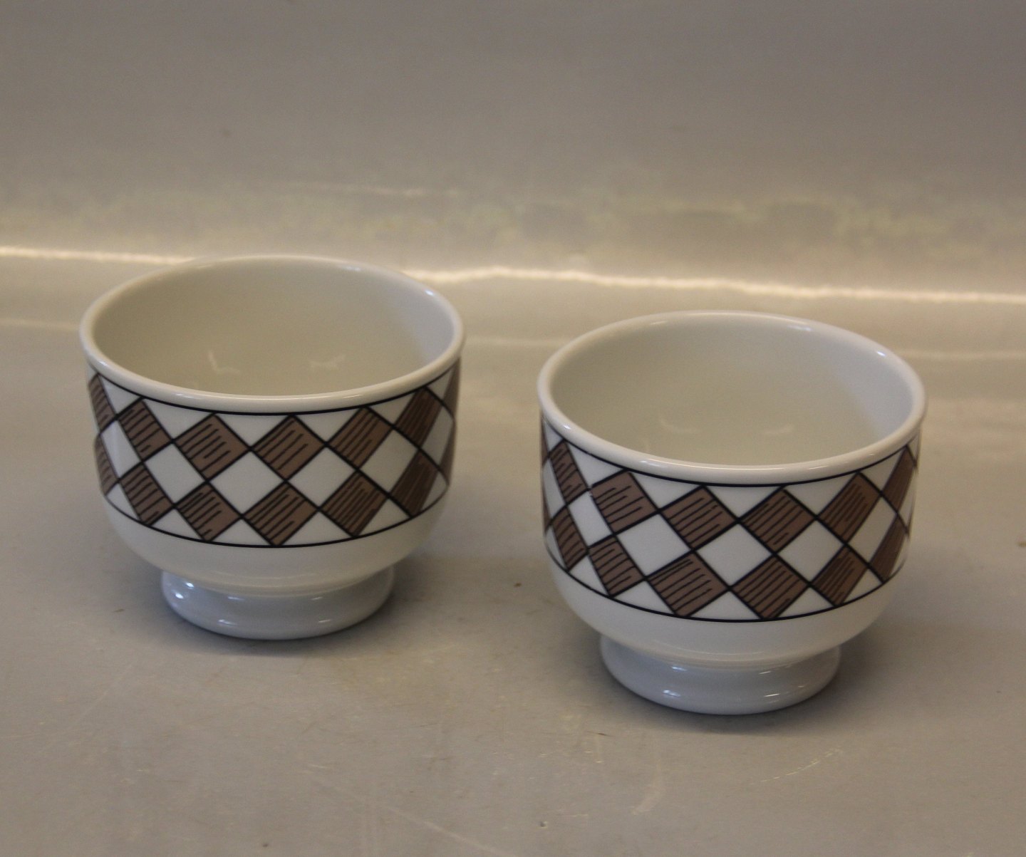 B&G 570.2 Pair of Bowls 7.5 x 9.5 cm Brown squarres - harlequin Bing and Grondahl Marked with the three Royal Towers of Copenhagen. Bing & Groendahl In mint and nice condition