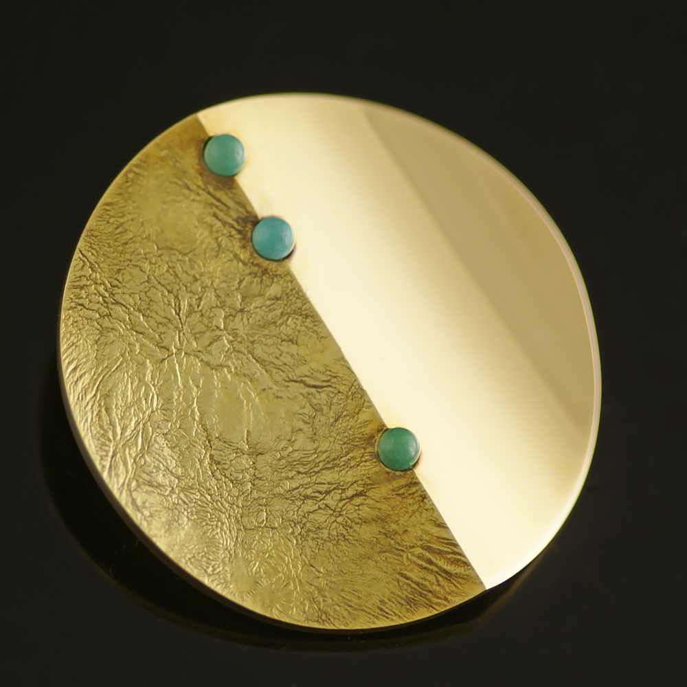 Bent Gabrielsen. Broche i 14k Guld med turkiser.
