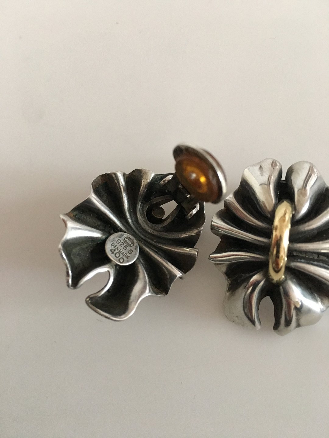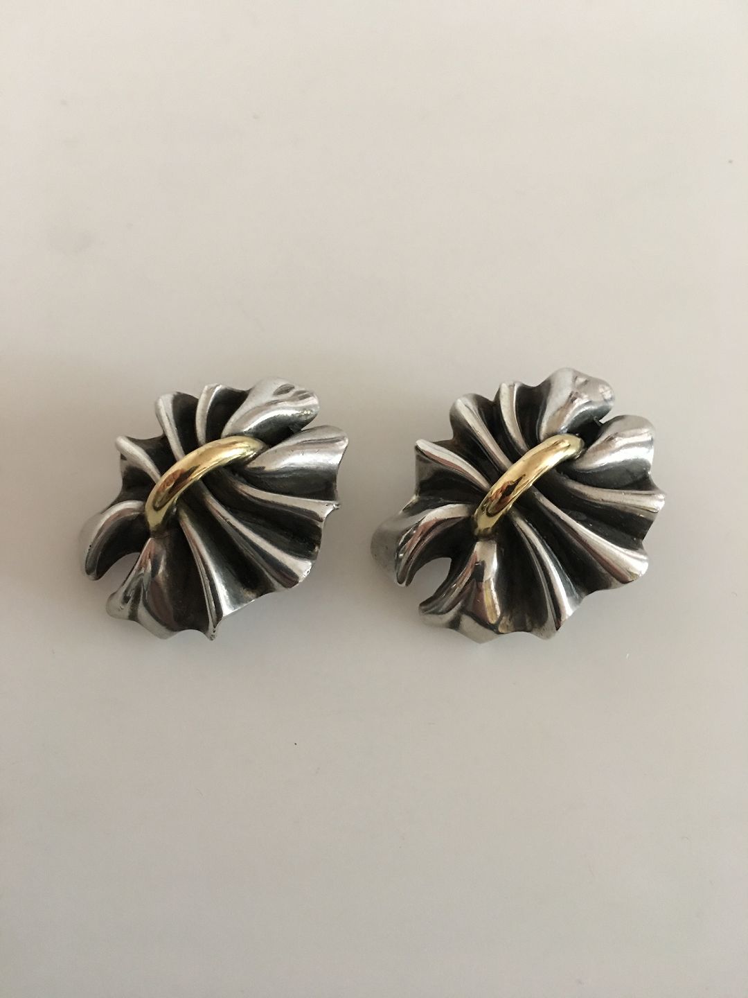 Georg Jensen Sterling Sølv og 18K Guld Lene Munthe Øreringe (Clips) No 400. Måler 3 cm x 2 cm. Vejer tilsammen 27,3 gram.