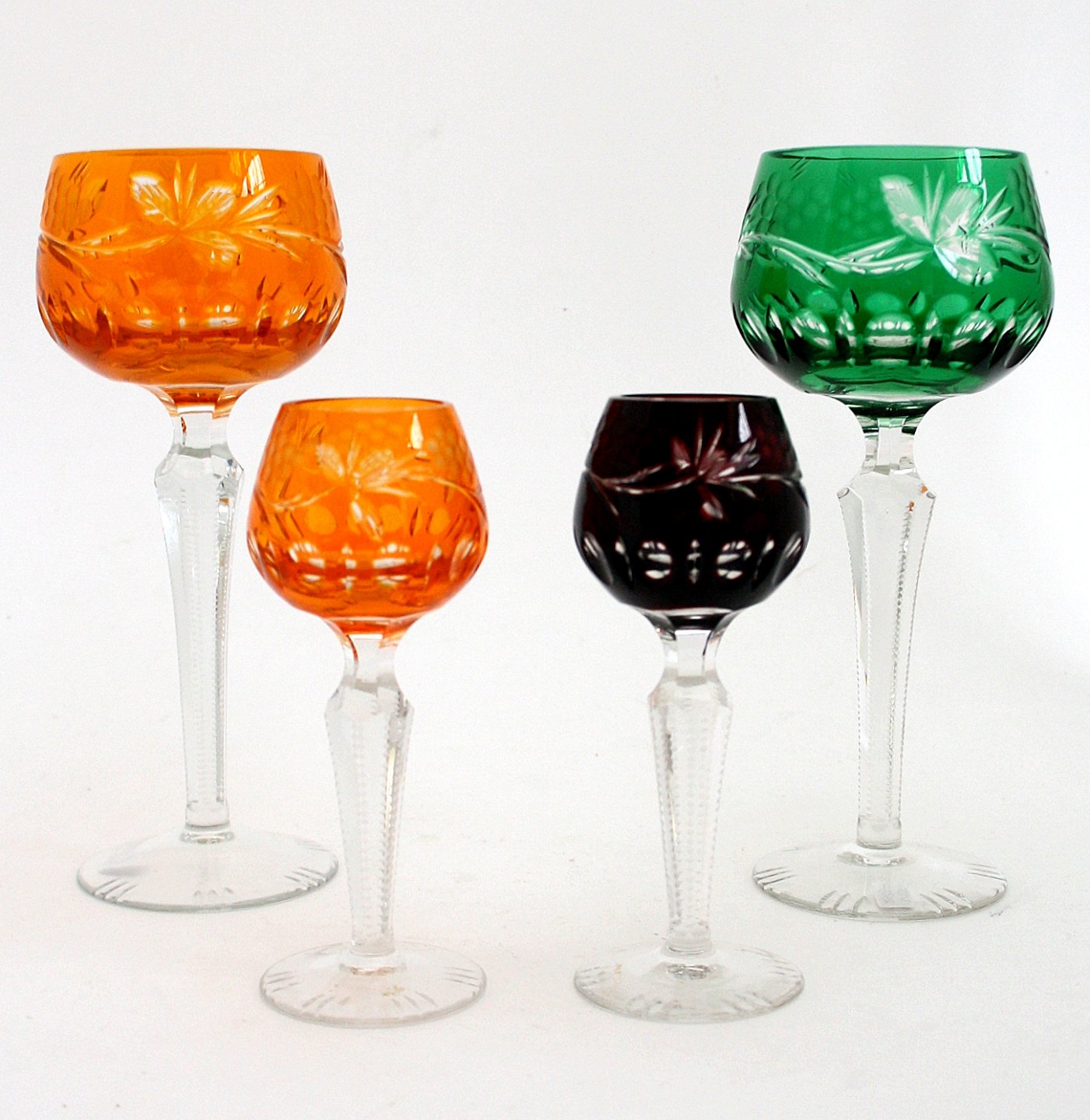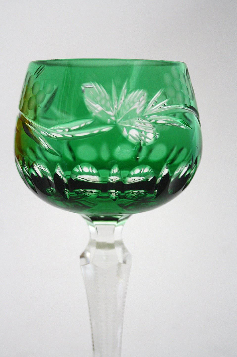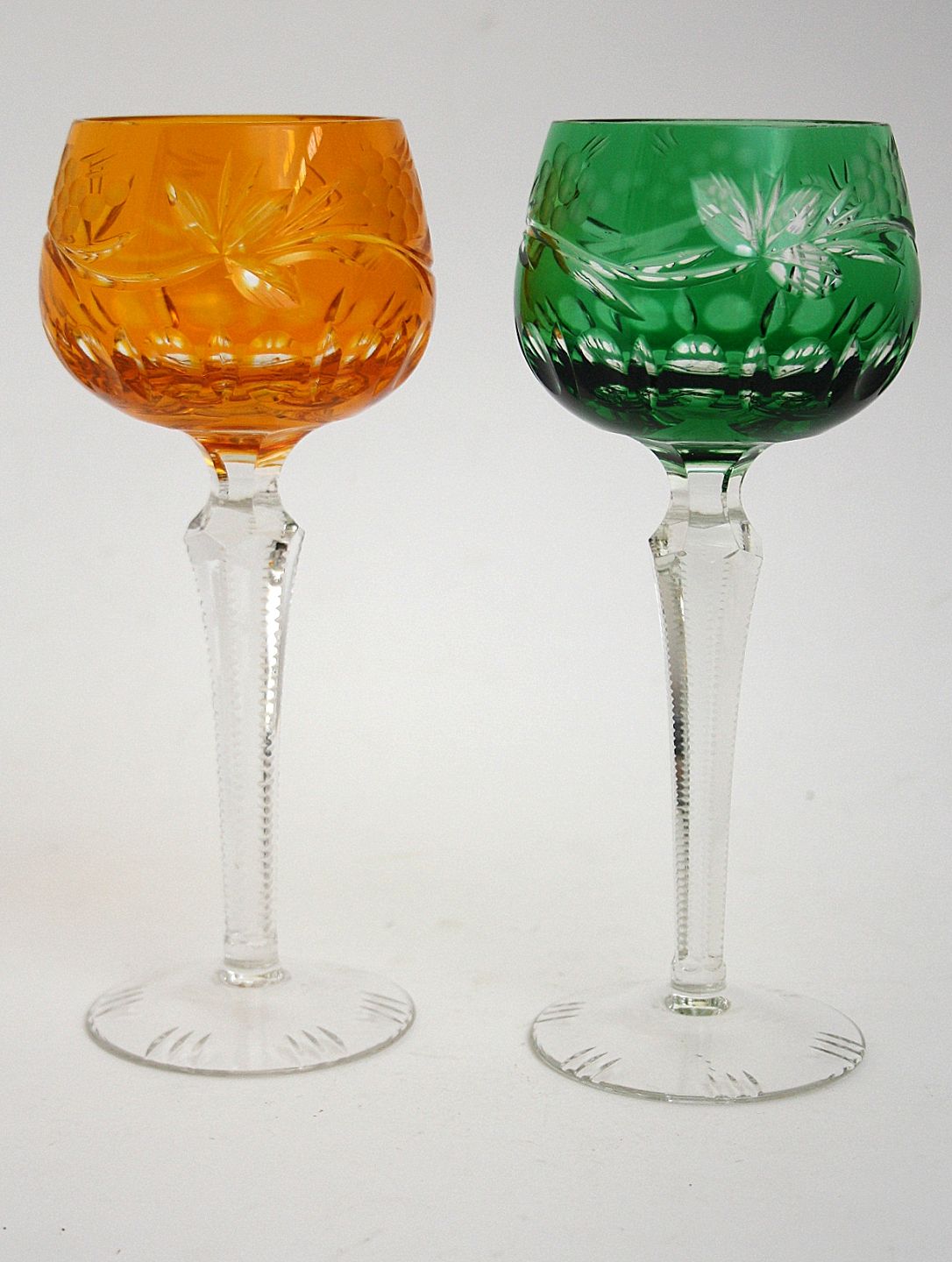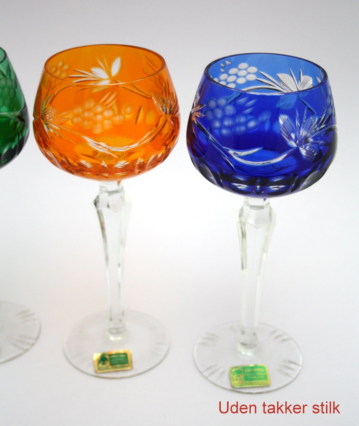Lauritzer krystal, Germany, Bøhmiske vinglas med slibninger på kumme, stilk og fod. Højde 19,5 cm. Pris: 250 kr. stk.
