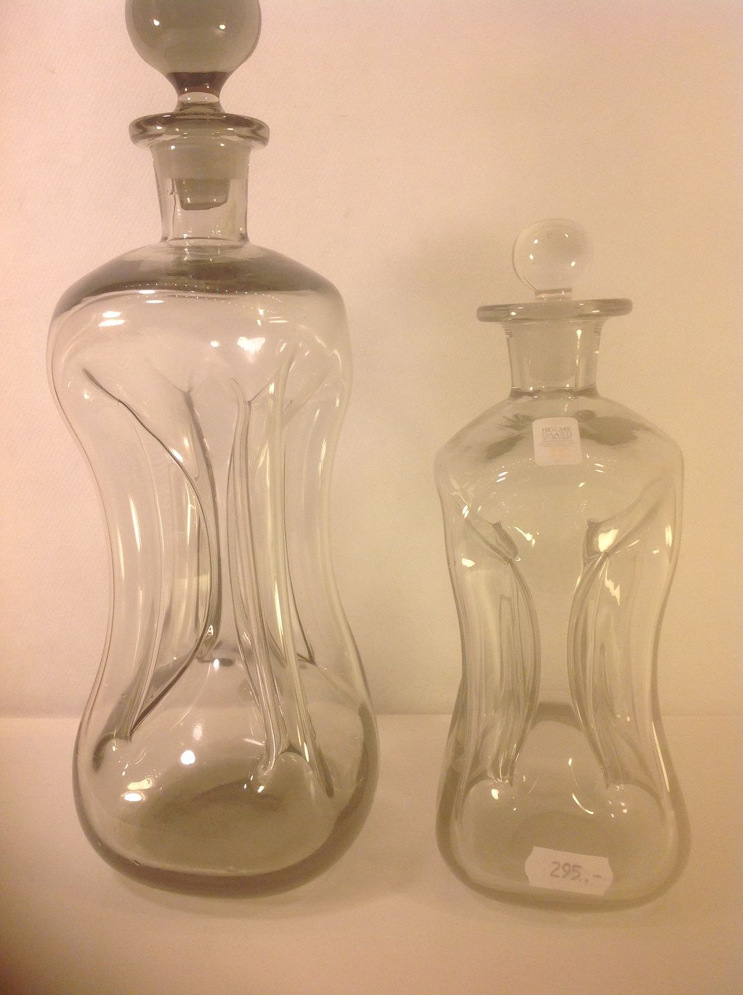 Snapse klukflasker i røgfarvet glas.