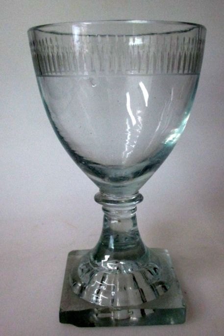 Norwegian drinking glass "Gorm den Gamle" approx. 1830. With grinding on the cum. Square foot with minor rejection. Height: 14 cm. Rated at Fyns Kunstmuseum 12.11.2004