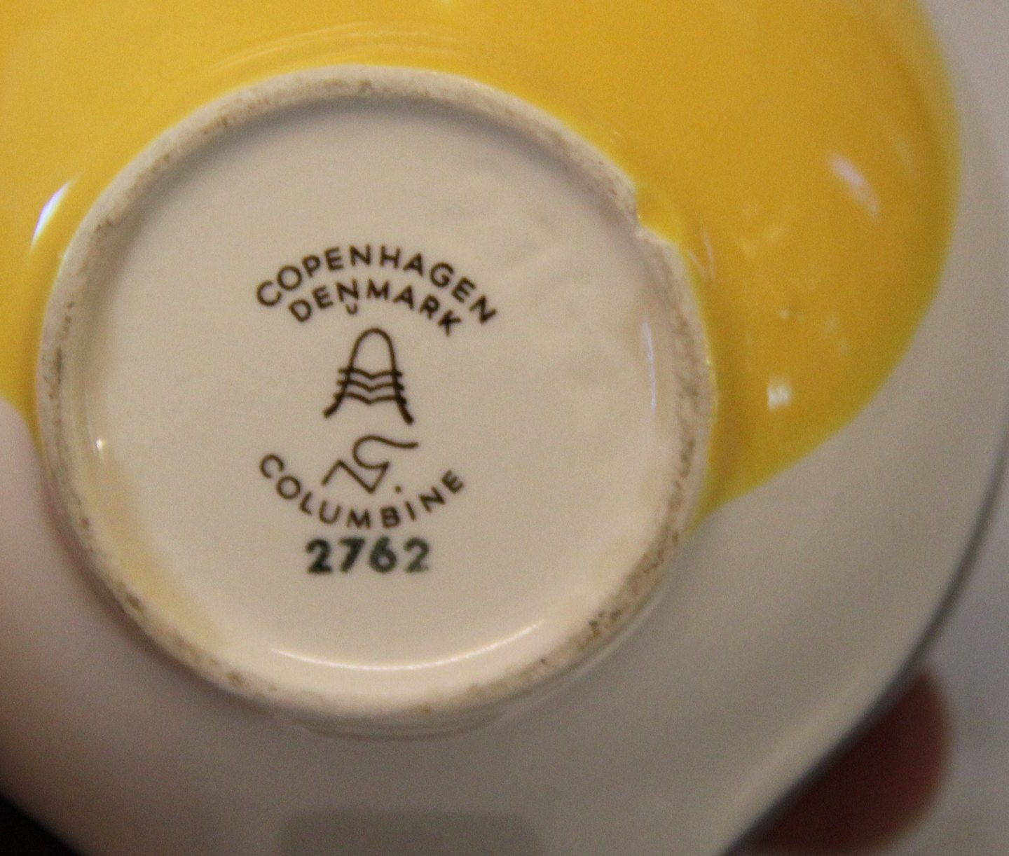 Aluminia Columbine Nils Thorsson 2762 Aluminia Columbine hvid, sort og gul blomsterholder/fugl 9,5 cm