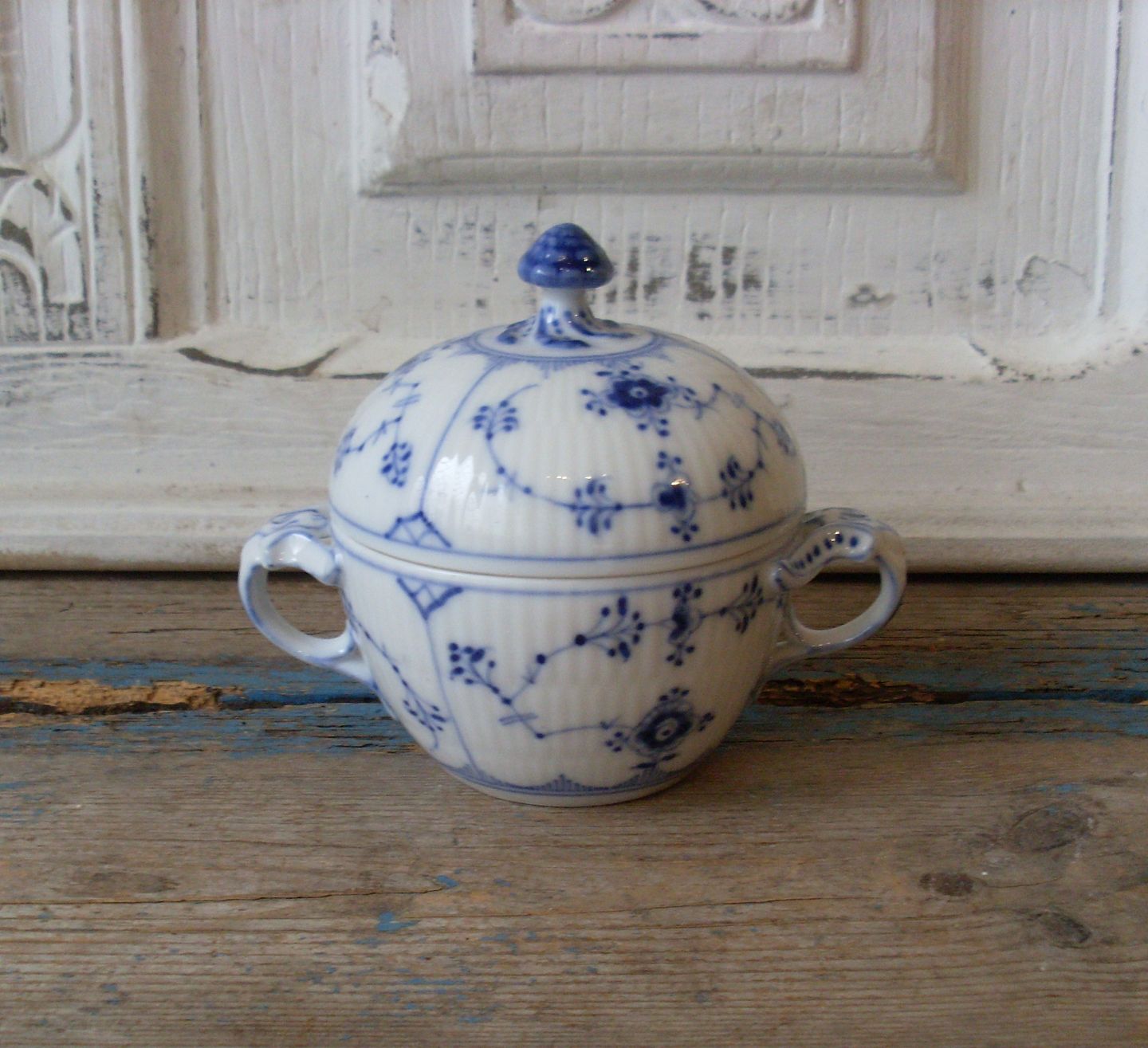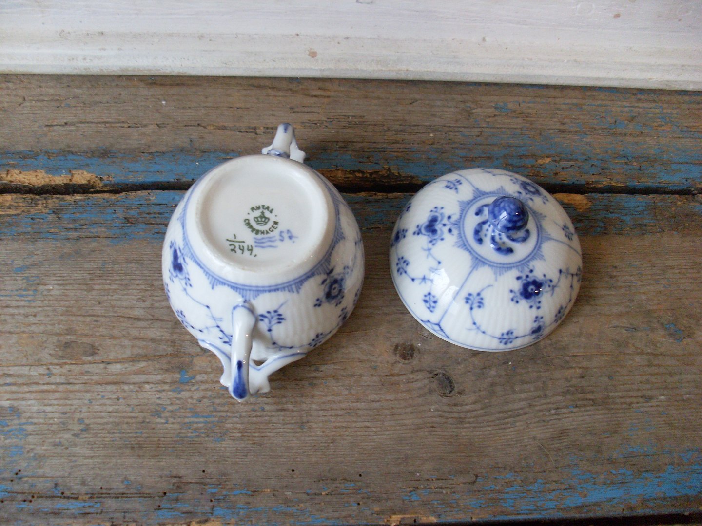 Royal Copenhagen Musselmalet riflet sukkerskål no. 244