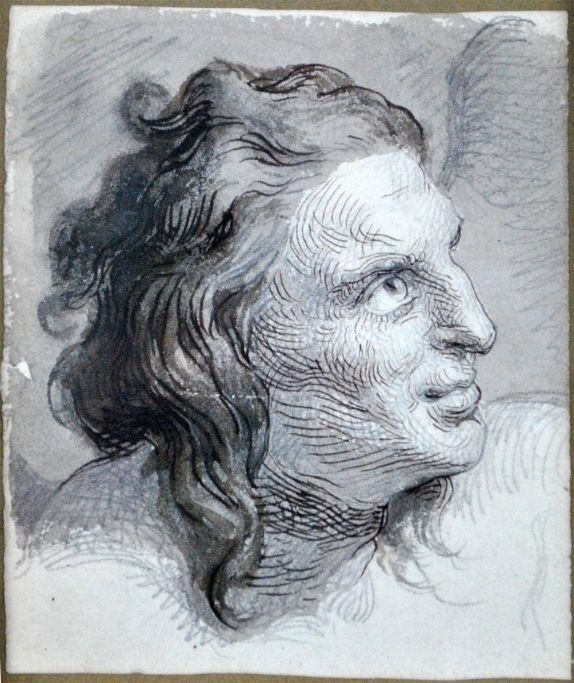 Dansk kunstner (18. årh.): Portræt af en mand. Tusch på papir. 12 x 9,5 cm. Usigneret.