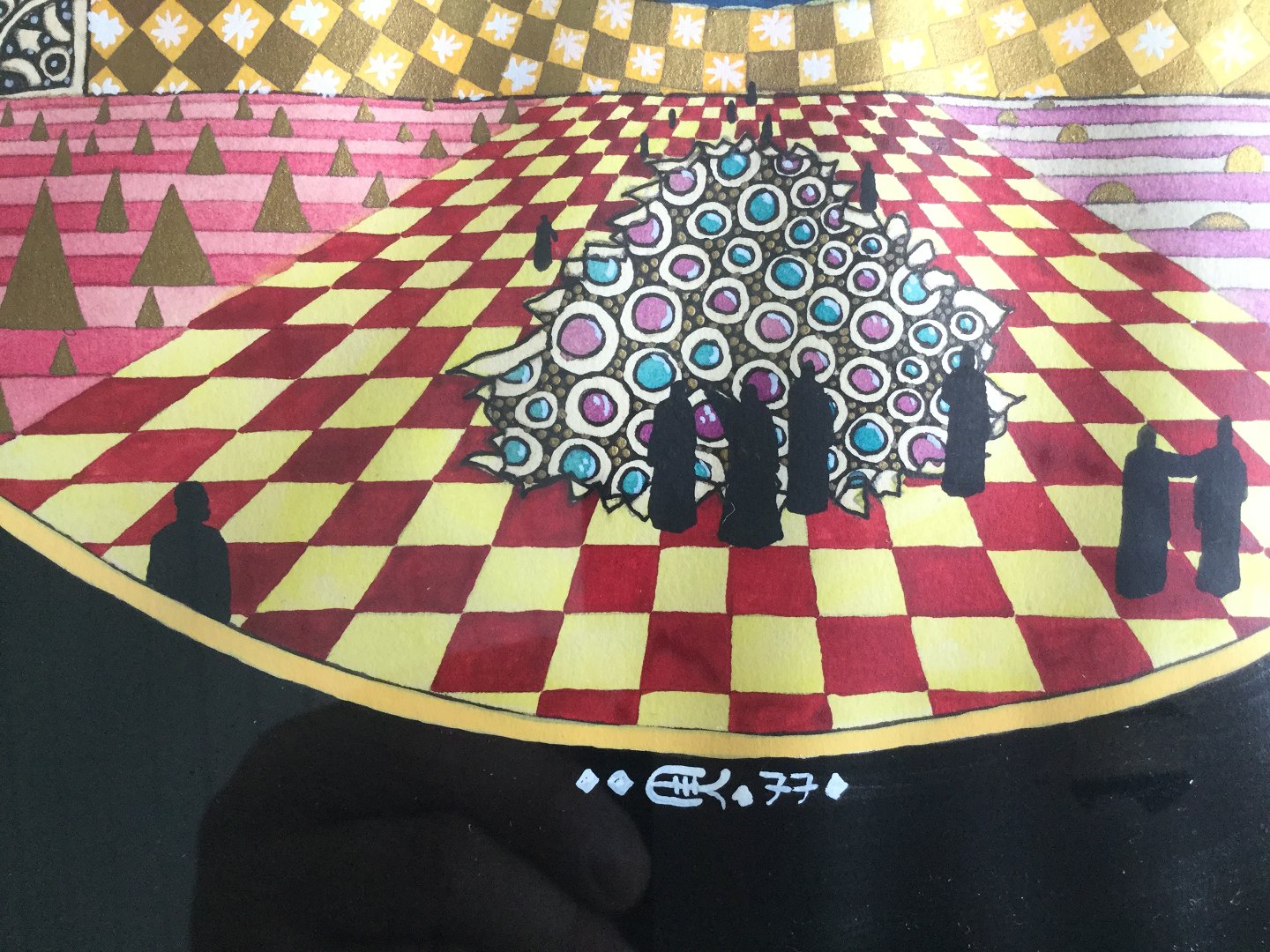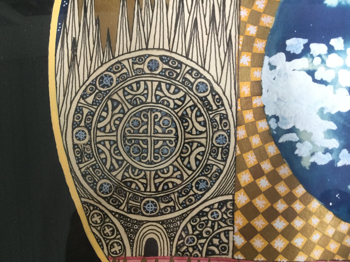 Text available in Danish: Maleri af Esben Hanefelt Kristensen - St. Georg 1977.