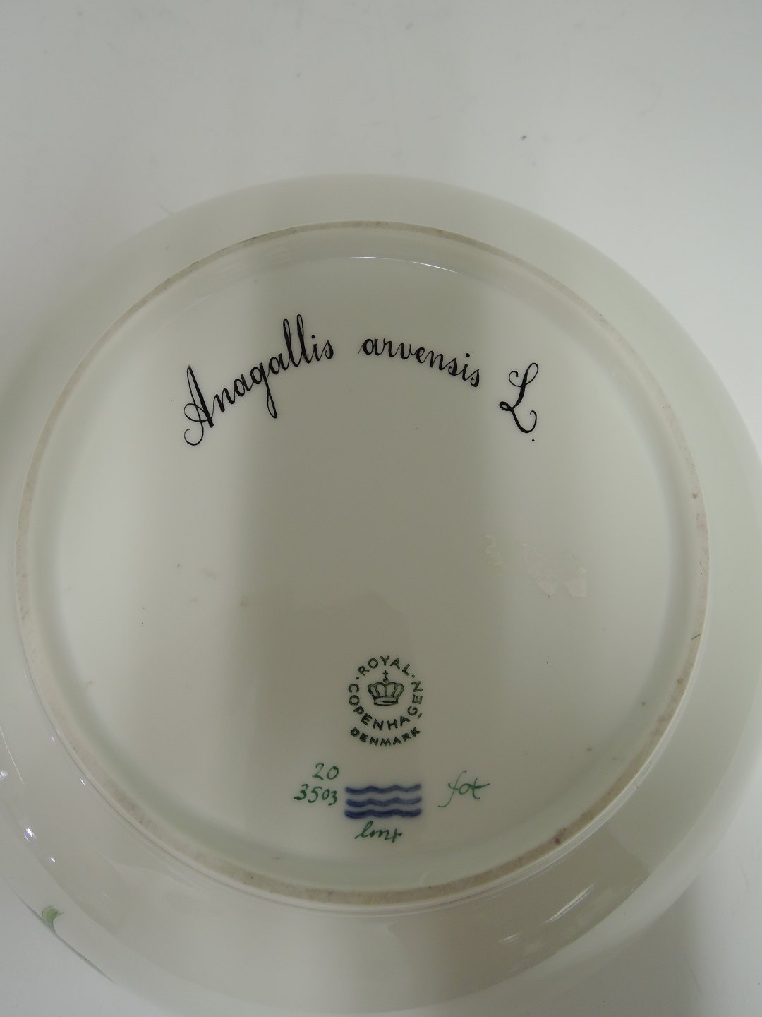 Royal Copenhagen. Flora Danica. Rund skål. 70 cl. Diameter 20,5 cm. Design #3503. (1 sortering). Anagallis arvensis L