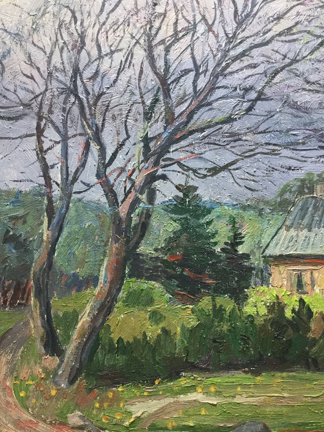 Maleri - forblæste træer ved vej 1967.